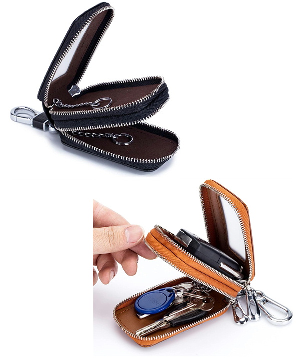 スマートキーケース クリア窓付きダブルファスナータイプ クールで上品なデザインのレザーキーケース!