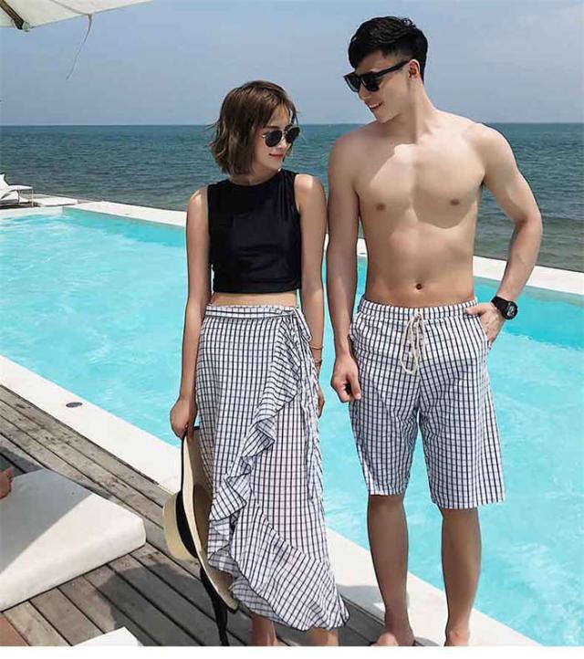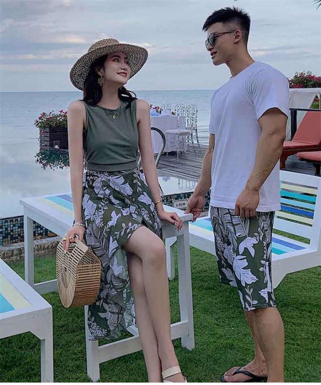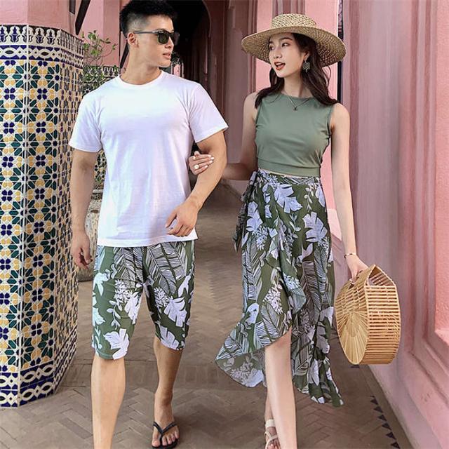 商品名:ペア水着 カップル水着 レディース メンズ ペアルック 3点セット 花柄 パッド付き メンズ水着 男性用 ビーチパンツ サーフパンツ みずぎ ミズギ 男女 温泉 ハネムーン 蜜月 海外旅行 新婚旅行 夏 サマー 送料無料