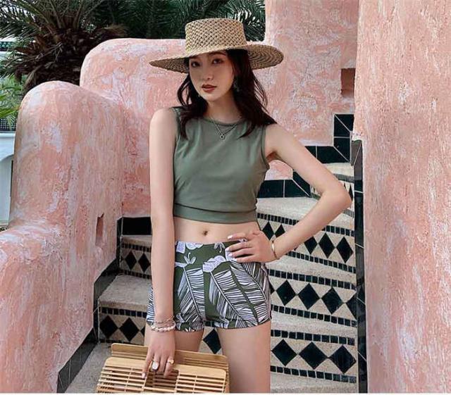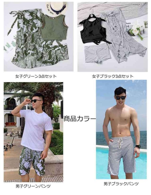 ペア水着 カップル水着 レディース メンズ ペアルック 3点セット 花柄 パッド付き メンズ水着 男性用 ビーチパンツ サーフパンツ みずぎ
