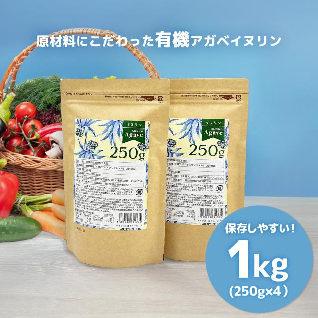有機 イヌリン パウダー 1kg 1000g 食物繊維 オーガニック サプリ 有機食物繊維加工食品 アガベイヌリン 250g×4袋 パッケージリニューアル 渡邊薬品 サプリ 水溶性 食物繊維 粉末 有機 アガベイヌリン パウダー サプリ 送料無料 医薬品GMP工場 ※有機原材料使用※