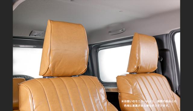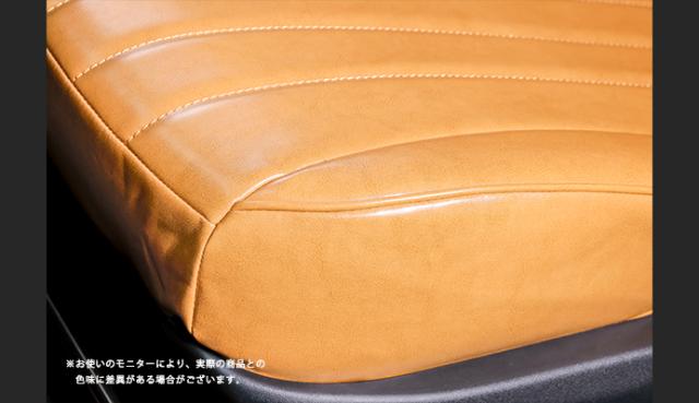 アンティーク調の雰囲気で本革に近い質感の人工皮革である『PUレザー』を採用したシートカバー。