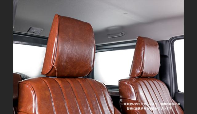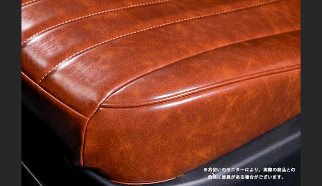 アンティーク調の雰囲気で本革に近い質感の人工皮革である『PUレザー』を採用したシートカバー。