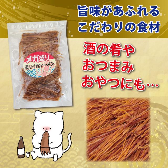 - ボリューム満点で味、食感も良くて ビールにのおつまみに最高です! 私は昔からイカソーメンが大好きなので おやつとしても楽しんでます! 袋もジッパー付きなのでそのまま保存 出来て便利なのもとても良いです...