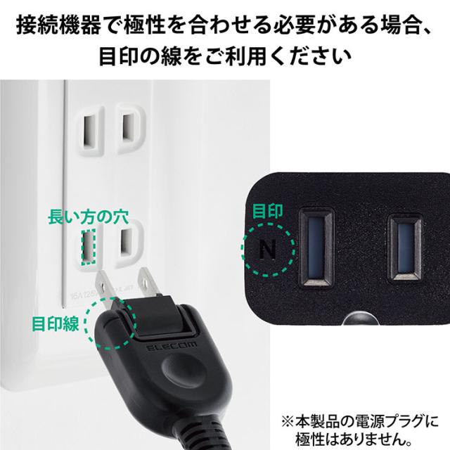 電源タップ 延長コード? コンセント 3m 2P 1個口 ほこりシャッター 絶縁キャップ スイングプラグ 吊り穴タグ付 125V 15A 1500W テーブルタップ? ブラック エレコム ELECOM
