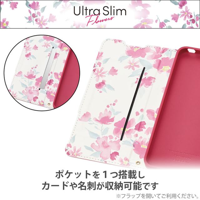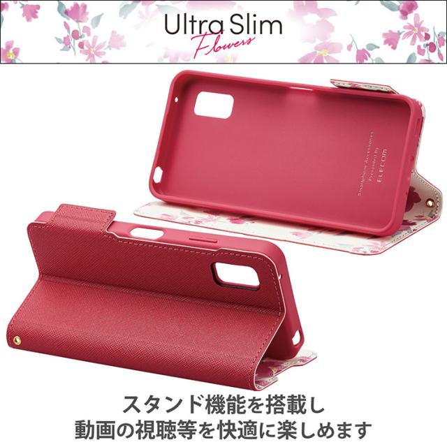 AQUOS wish3 ( SH-53D ) ケース ソフトレザー カバー 手帳型 マグネット フラップ 衝撃吸収 超軽量 薄型 ストラップホール付 スタンド機能付 花柄ディープピンク エレコム ELECOM