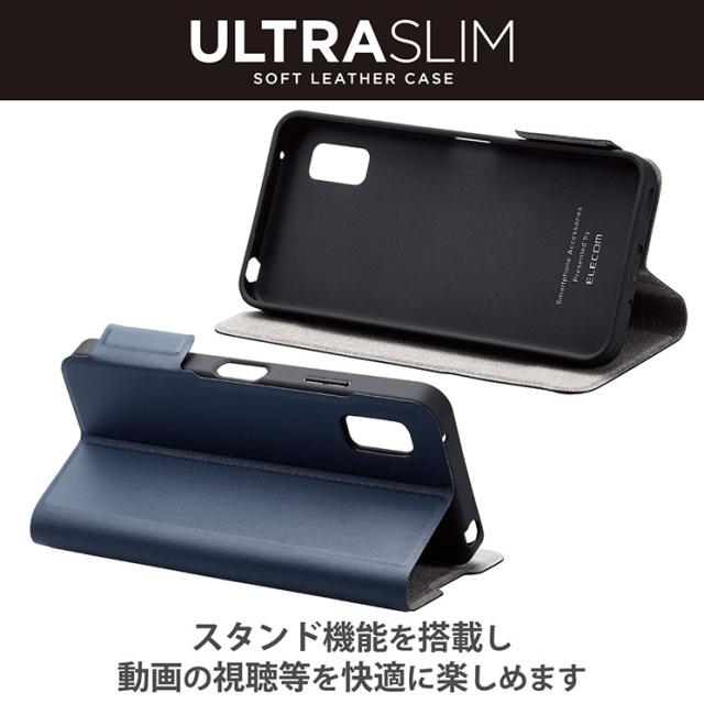 AQUOS wish3 ( SH-53D ) ケース ソフトレザー カバー 手帳型 マグネット フラップ 衝撃吸収 超軽量 薄型 スリム スタンド機能付 ネイビー エレコム ELECOM