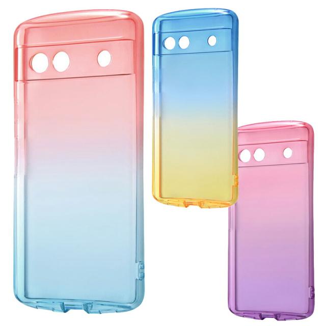 GooglePixel7a ケース クリア 透明 グラデーション レッド ブルー イエロー ピンク パープル スマホ 耐衝撃 TPU スケルトン グーグル ピクセル IN-GP7ATC12