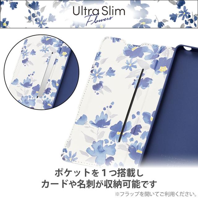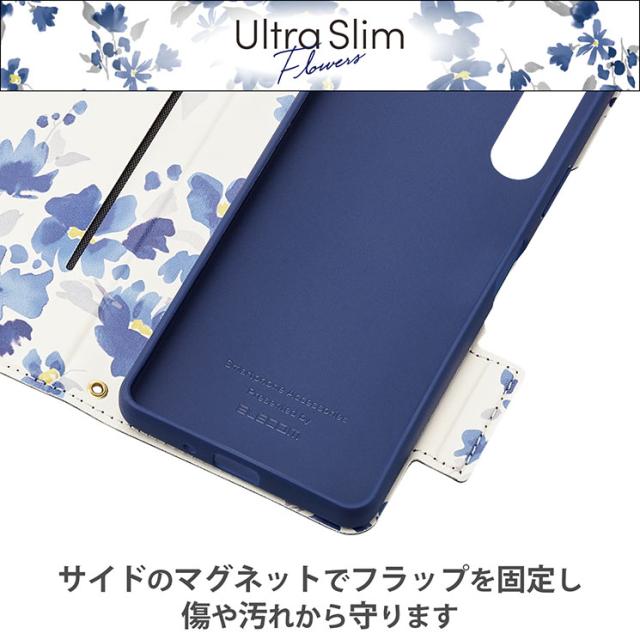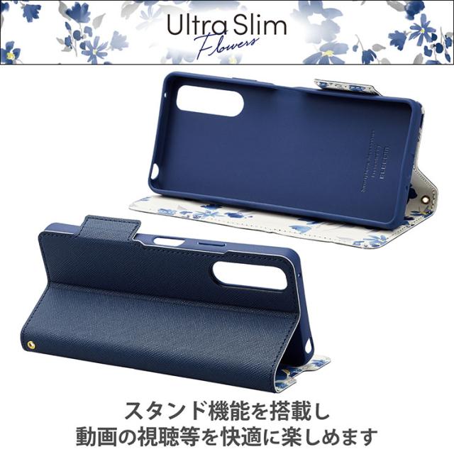 Xperia 10 V ( SO-52D / SOG11 ) ケース ソフトレザー カバー 手帳型 マグネット フラップ 衝撃吸収 超軽量 薄型 スリム ストラップホール付 花柄ネイビー エレコム ELECOM