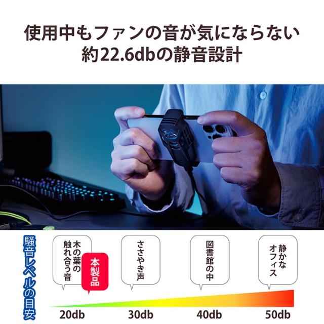 対応:スマホクーラーゲームや動画撮影中の熱上昇を防ぐハイパワースマホクーラー。ペルチェ式で、軽量・コンパクト・静音ながら、最高-18℃の冷却力を発揮します。また異常な高温になった場合は、自動で停止する安全装置も内蔵しています。■冷却方式:ペルチェ式 ■冷却能力:最高約-18℃ ■騒音特性:約22.6db ■対応機種:4.7〜7.0インチ(約W65〜85mmまで)のスマートフォン ■取付方法:上下挟み込み ■安全性:異常温度感知センサー(本製品の温度を監視し、異常な高温になった場合は自動で停止する安全安心設計です。) ■電源:USB(5V2A以上) ※USBアダプターは付属しません。 ■定格電圧:5V ■消費電力:約10W ■回転数:約5800rpm ■最大風量:約4.8CFM ■ファンの回転直径:約33mm ■外形寸法:W約42mm×D約30mm×H約78mm ■質量:約48g(ケーブル含まず) ■カラー:ブラック ■付属品:USB Type-Cケーブル(約1.2m ※コネクターを除く)メーカー:エレコム型番:P-CLPL01BKお取り寄せ商品について:メーカーの欠品または生産終了時は、当店よりご注文をキャンセルさせて頂く場合がございます。予めご了承ください。