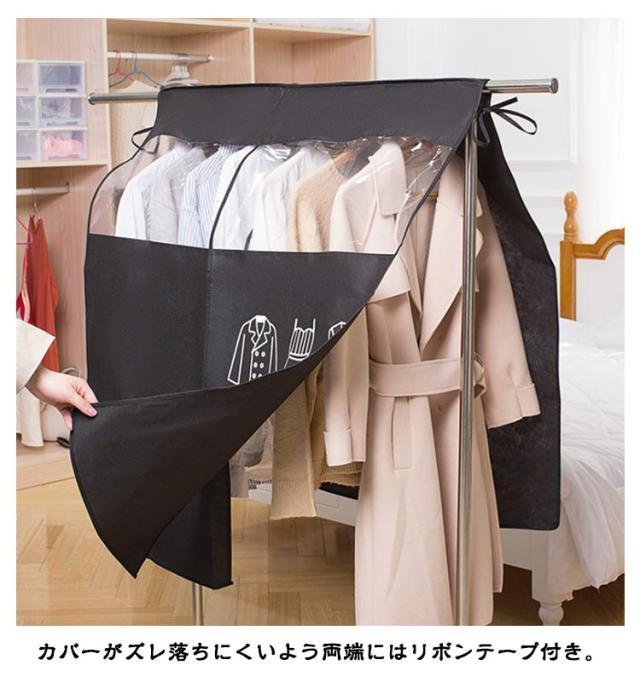 送料無料 ハンガーラックカバー 洋服カバー 不織布 目隠し ホコリよけ 汚れ防止 パイプハンガー カバー 透明窓付き 衣類カバー ハンガーカバー クローゼット収納 保護 防塵 防湿 おしゃれ 整理 インテリア 雑貨