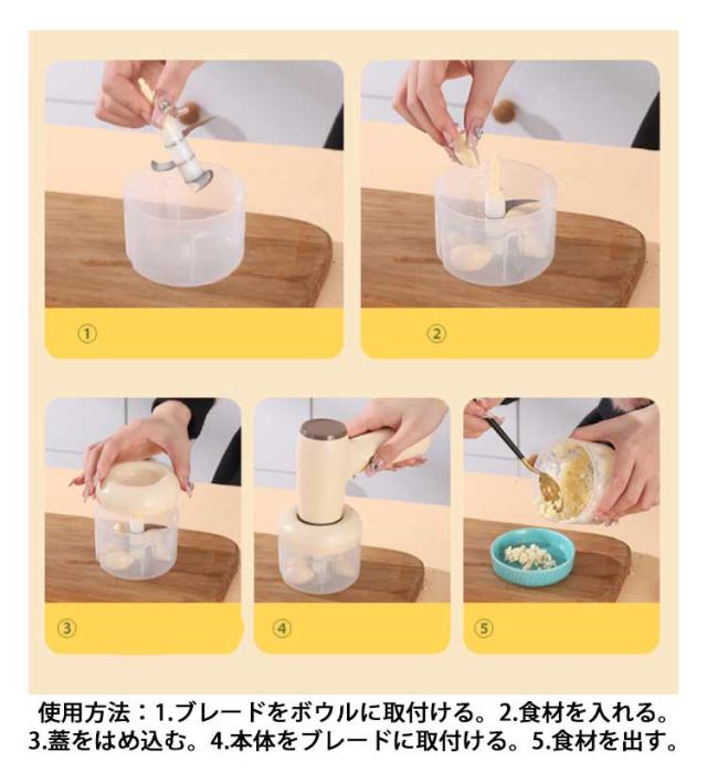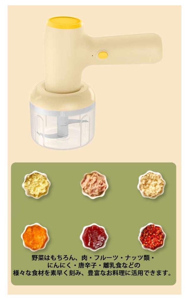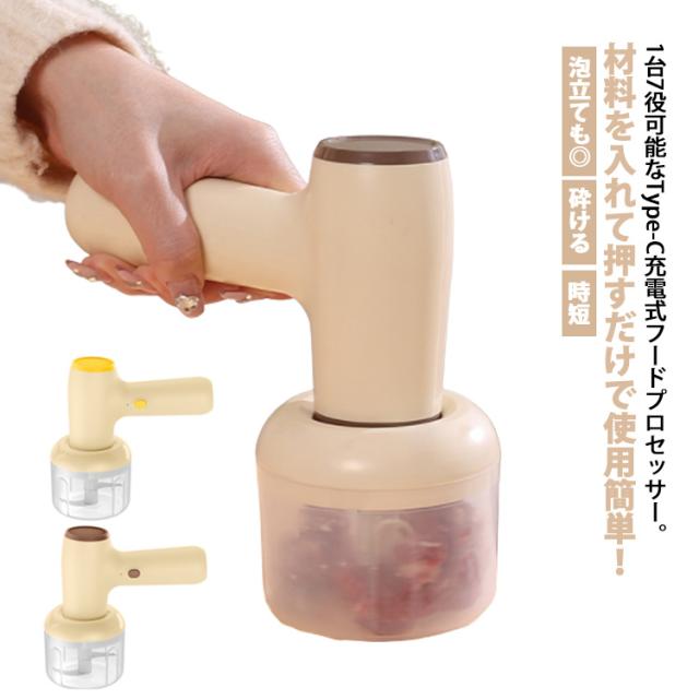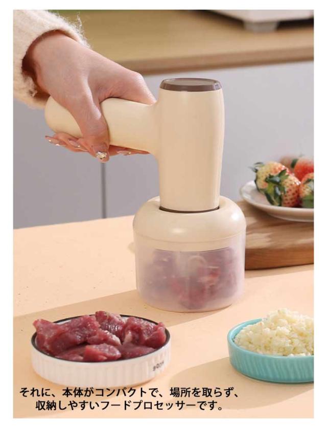 フードプロセッサー 充電式 ブレンダー 小型 ミキサー 時短 電動 スライサー 野菜カッター チョッパー 離乳食 介護食 大根おろし 氷 砕ける 泡立て おろし みじん切り 器 野菜 肉 潰す 刻む 砕く コードレス 滑り止め おしゃれ