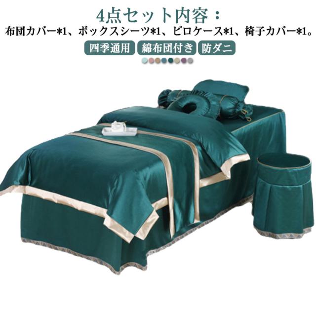 布団カバー 4点セット 美容室 マッサージベッドカバー 寝具セット ボックスシーツ ベッドカバーセット 枕カバー 椅子カバー 四季通用 防ダニ 洋式和式兼用 綿布団付き 養生 美体 マッサージ専用 整体ベッドカバー エステベッドカバー サロン専用 SPA マッサージテーブル