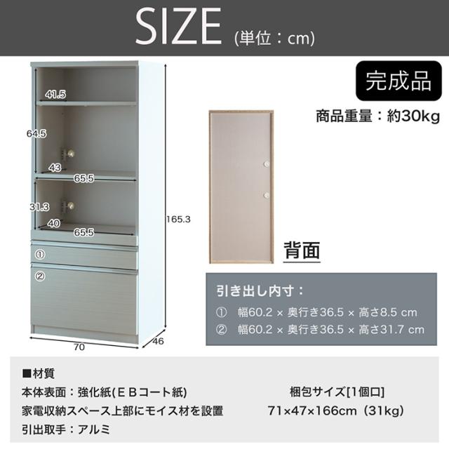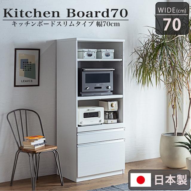 【搬入・組立設置付き】日本製 キッチンボード 幅70cm 完成品 キッチン収納 キッチンラック 食器棚 食器収納 レンジ台 ダイニングボード カップボード スリム モイス 木製 台所 おしゃれ 引き出し