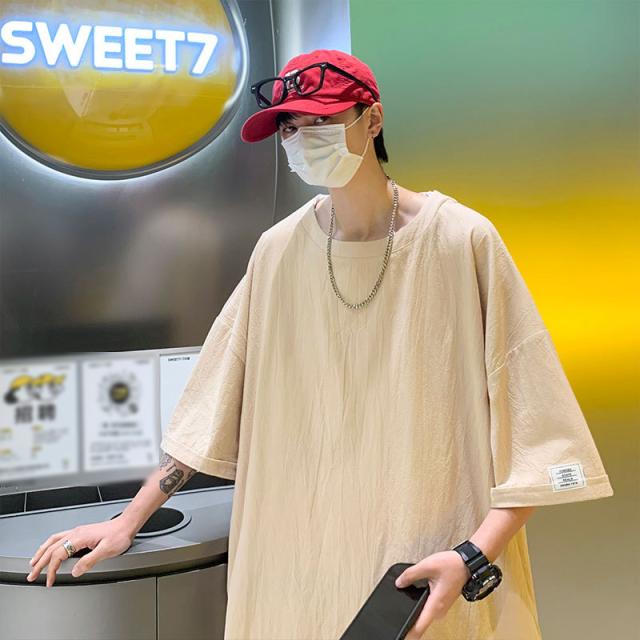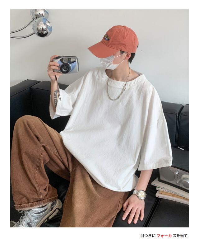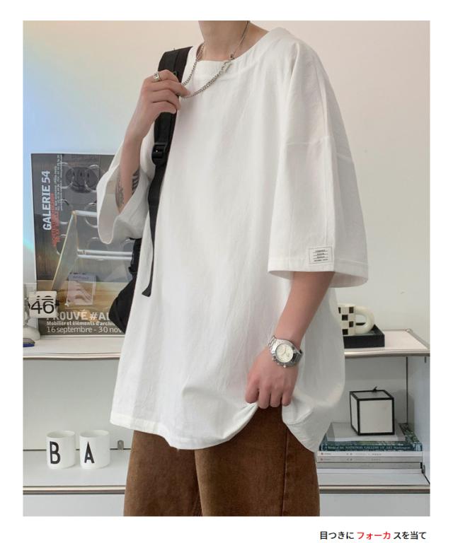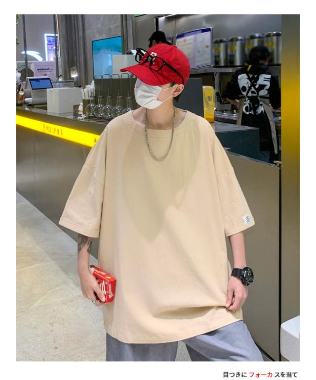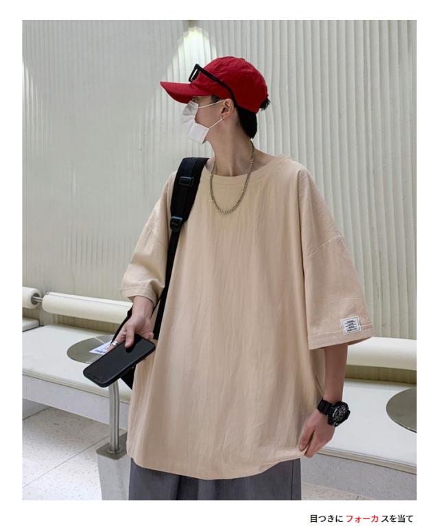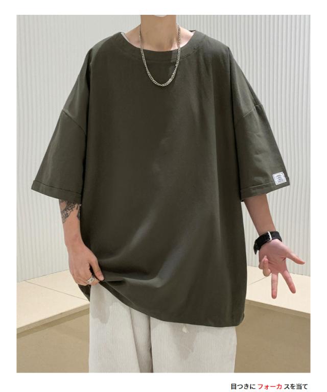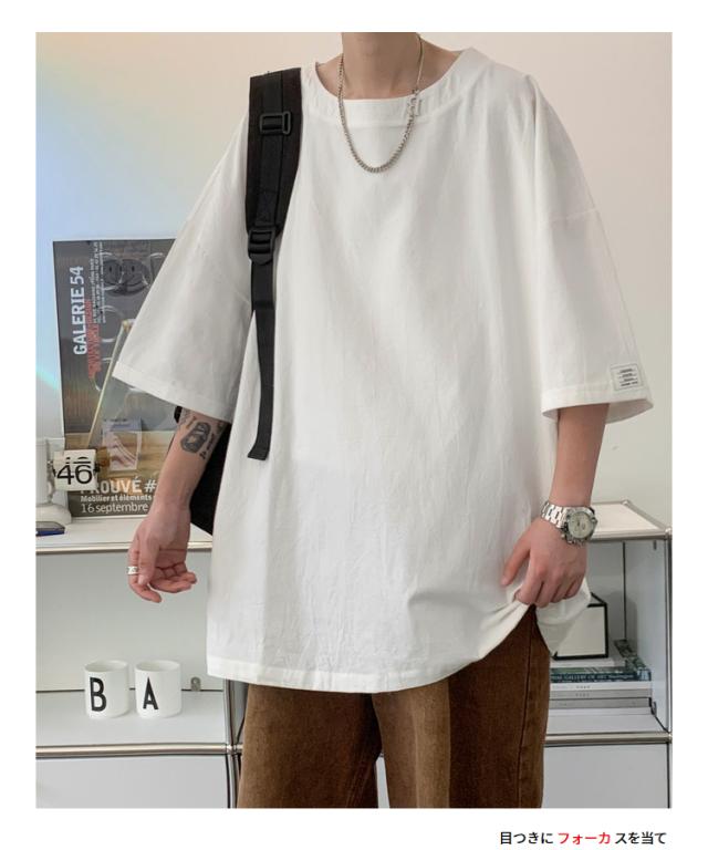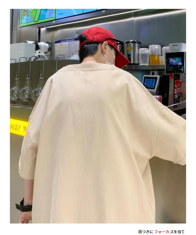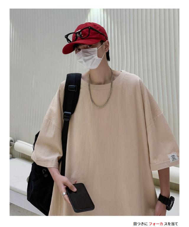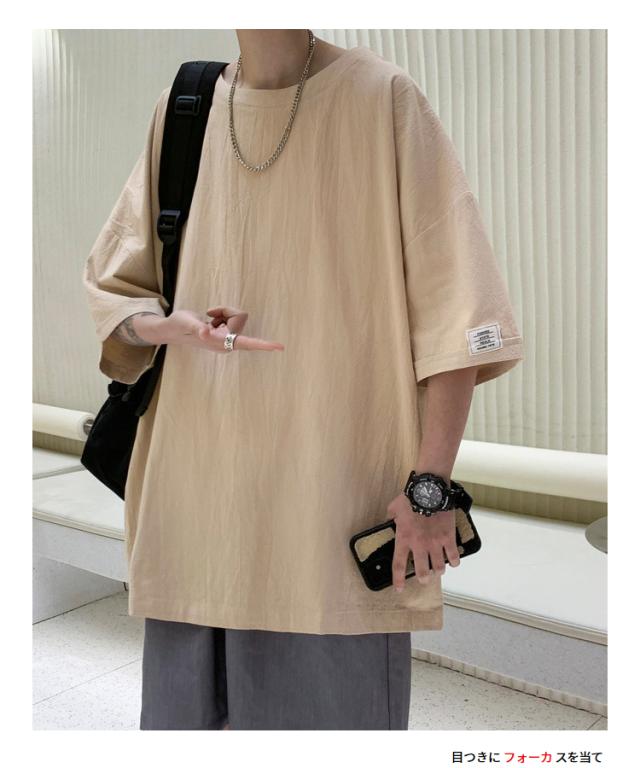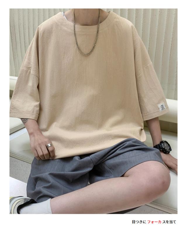 Tシャツ カットソー メンズ 綿 麻 クルーネック トップス ビッグシルエット オーバーサイズ 大きいサイズ 春 夏