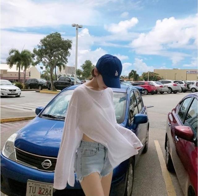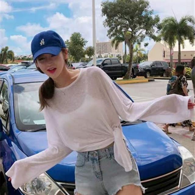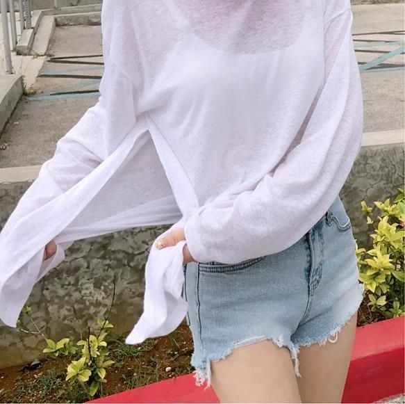 シアートップス 接触冷感 レディース 長袖 スリット入り 重ね着 インナー 透け感 レイヤード 紫外線対策 薄手 きれいめ 日焼け止め 水着 水陸両用 ゆったり