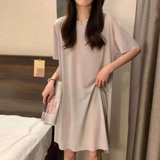 ルームウェア 半袖 部屋着 ワンピース ボーダー マタニティレディース 透けない パジャマ 体型カバー ネグリジェ ゆったり 薄手 涼しい 大きいサイズ 送料無料