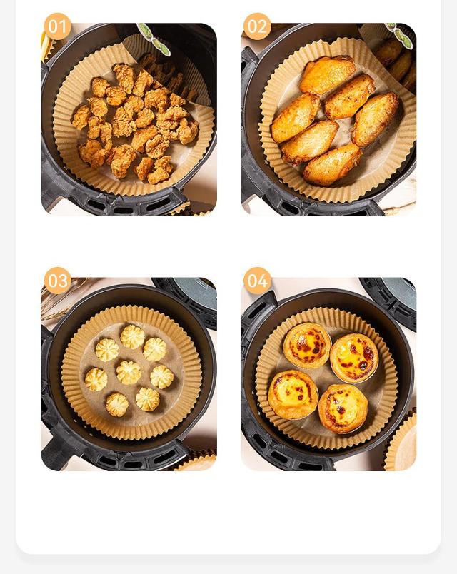 | ●エアフライヤー紙使用後、毎回洗う手間が省けます、食洗機の電気代も節約できます。 ●エアフライヤー紙は蛍光塗料、漂白剤などを使用せず。 ●エアフライヤー用紙は高さが4.5cmで、エアフライヤーの側面を保護する同時に、食べ物の残留物や油を防ぎ。 ●エアフライヤー用紙は、ノンフライヤー、オーブン、蒸し器、電子レンジ、フライパンなどに利用できます。 | |