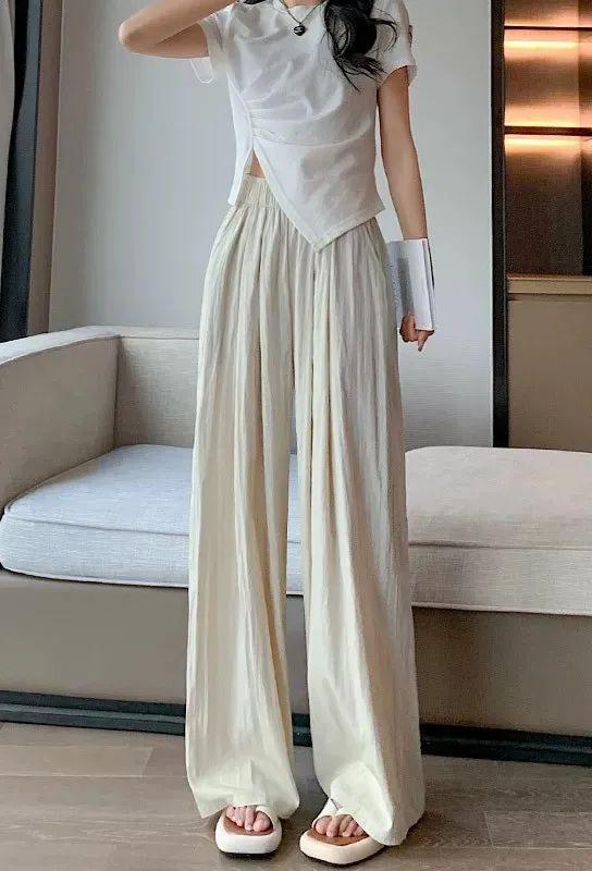 パンツ 送料無料 ワイドパンツ オーバーサイズ ロング フレア 春 夏 レディース プリーツ 涼しい パンツ ウエストゴム リラックスパンツ