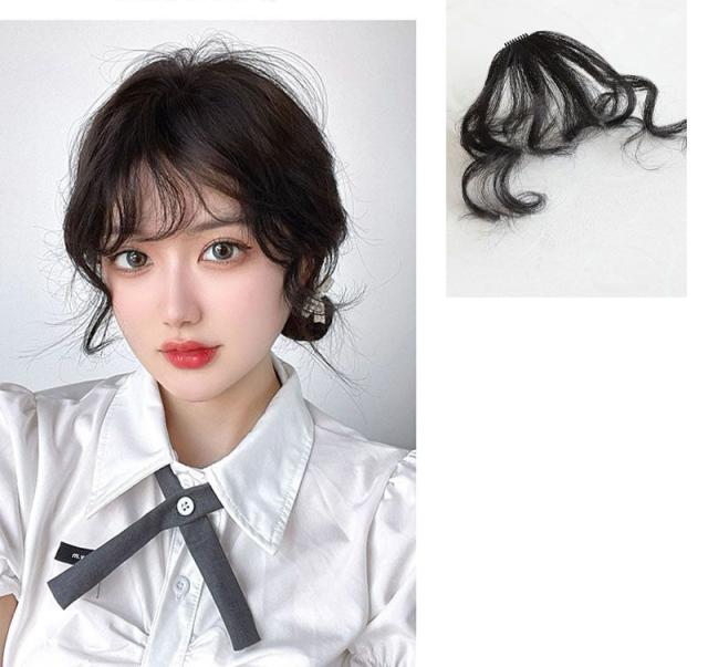 送料無料 前髪 ウィッグ 部分 ゆるカール 部分ウィッグ ポイントウィッグ つけ毛 付け毛 エクステ かつら 普段使い 和装 黒髪 前髪は軽く流せるエクステ