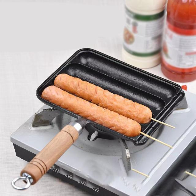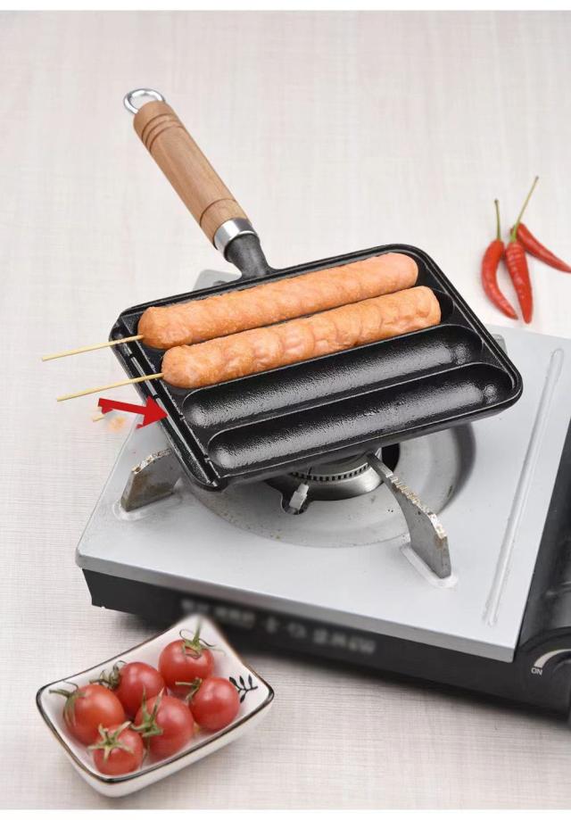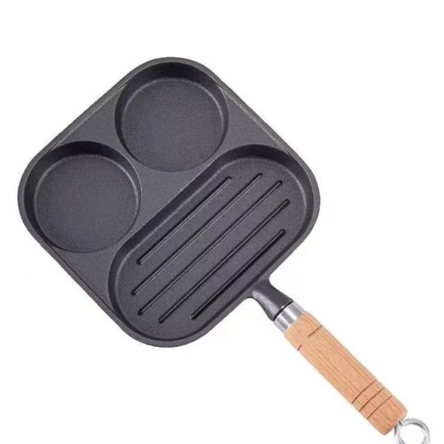 仕切り付き 目玉焼きフライパン ソーセージ 仕切り フライパン IH対応 3つ穴 円形フライパン マルチパン 焦げ付きにくい 洗いやすい コンパクト 軽量 鋳鉄