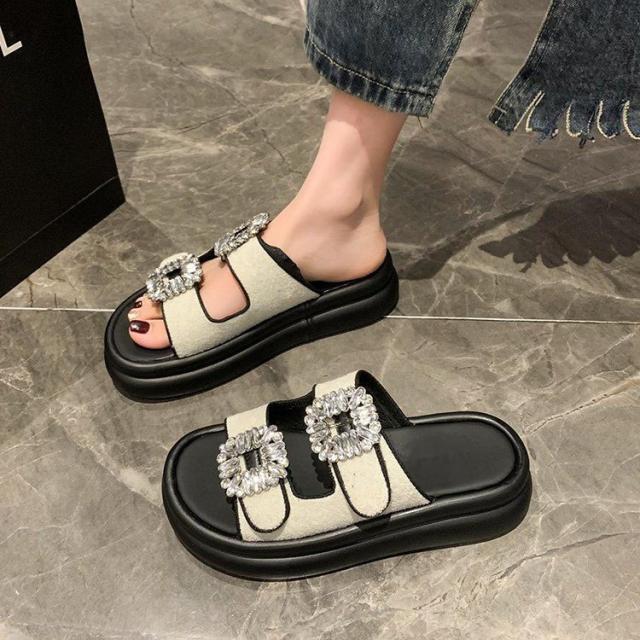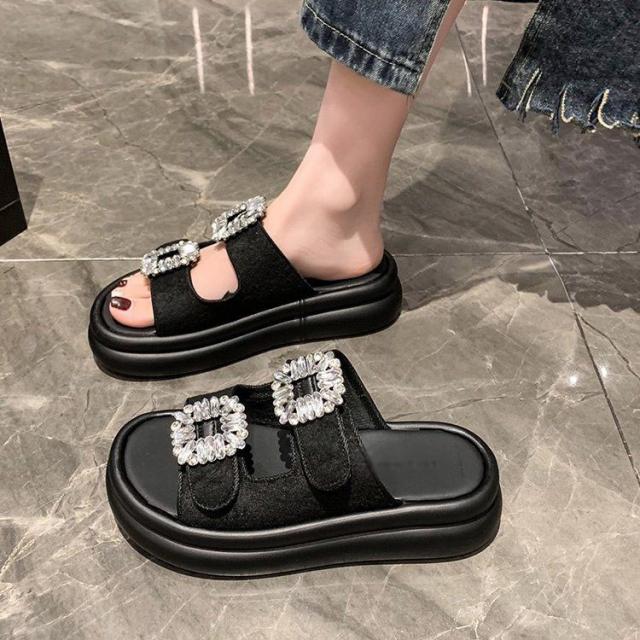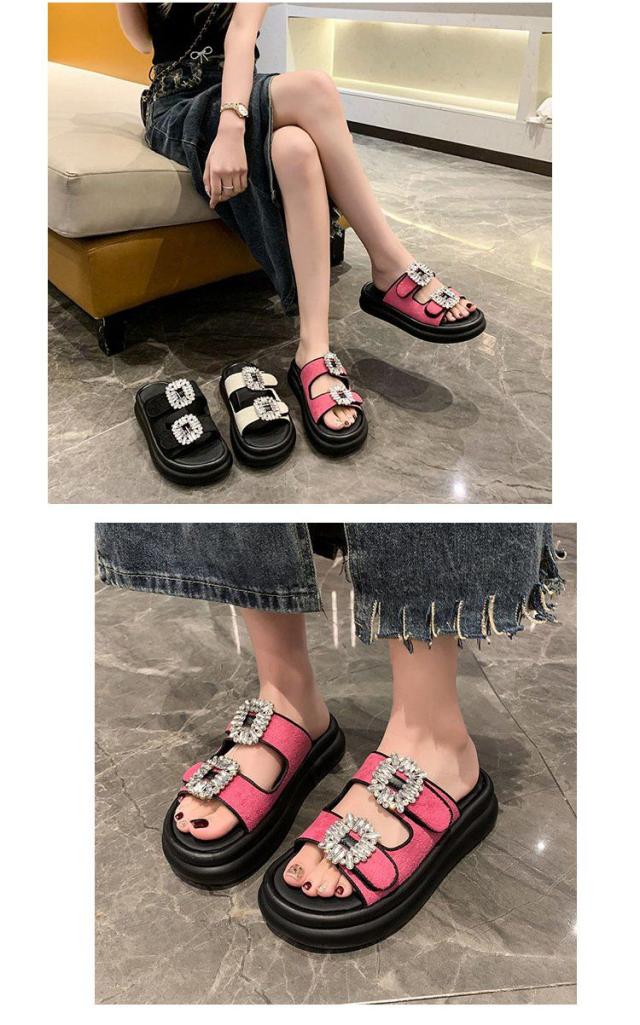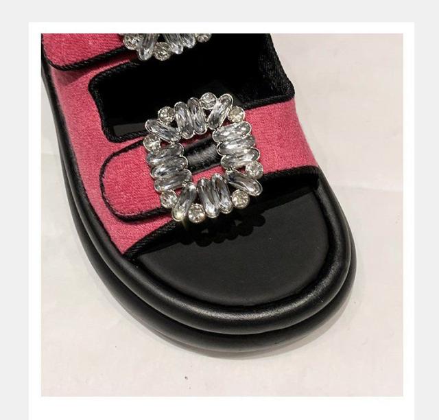 厚底 ビジュー ダブルベルト サンダル 靴 フラット PU フェイクレザー 楽ちん 美脚 スポーツサンダル きれいめ カジュアル ガーリー お洒落