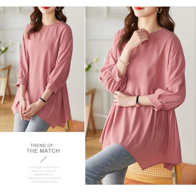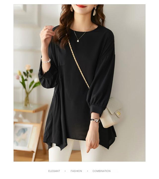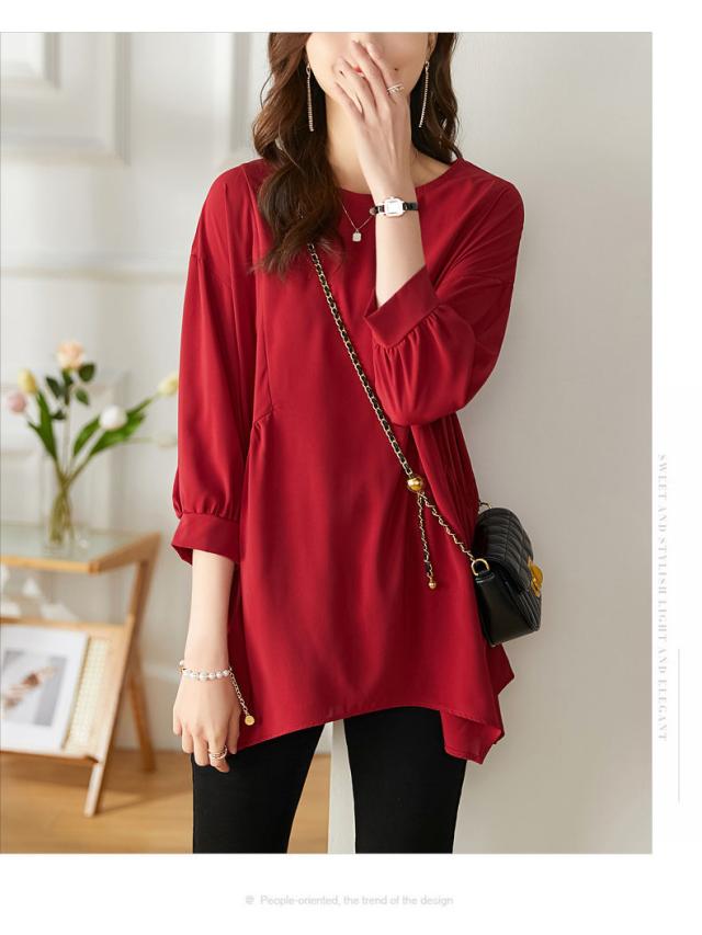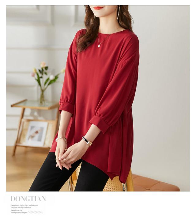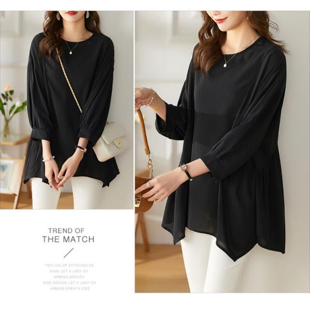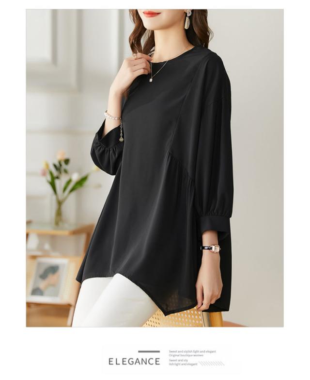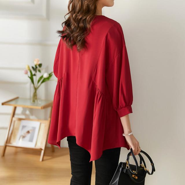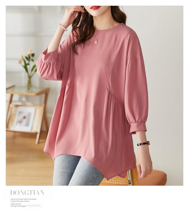 送料無料 チュニック プルオーバー ペプラム フレア シャツ 七分袖 体系カバー 夏服 ゆったり 大きいサイズ カジュアル チュニック レディース 韓国ファッション