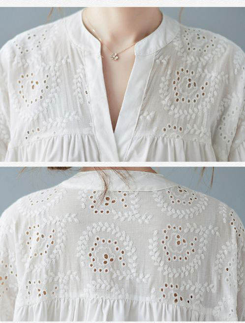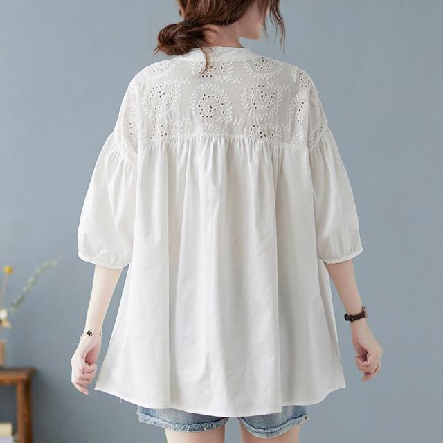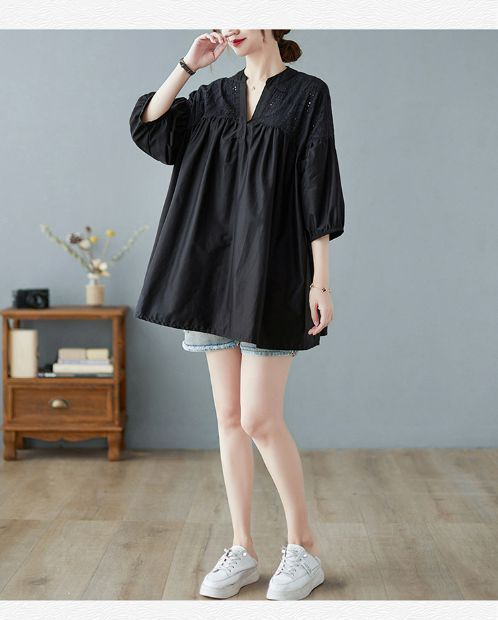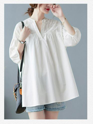 シャツ レディース チュニック ブラウス レース 夏 半袖 ロング ブラウス スキッパーシャツ 可愛い オフィス 通勤 ゆったり 着痩せ 体型カバー 送料無料
