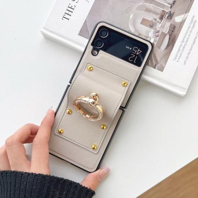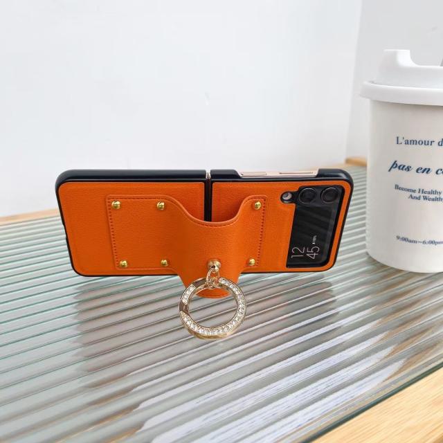 送料無料 Galaxy z Flip4 flip3 ケース ホールドリング付き PUレザー ケース カバー リング付き スマートリング レザー ギャラクシー Z Flip おしゃれ 高級感