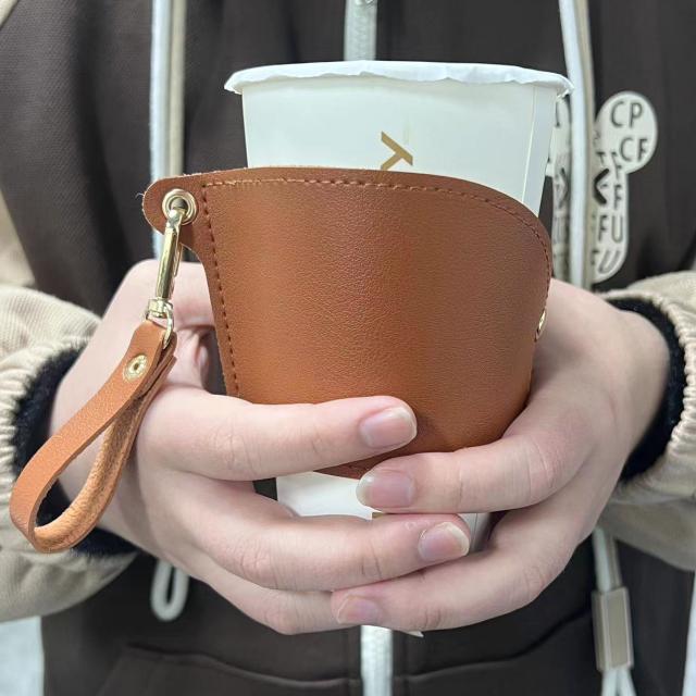 カップホルダー ドリンクホルダー 革 レザー テイクアウトドリンク 持ち歩き 持ち運び 折り畳み コンパクト