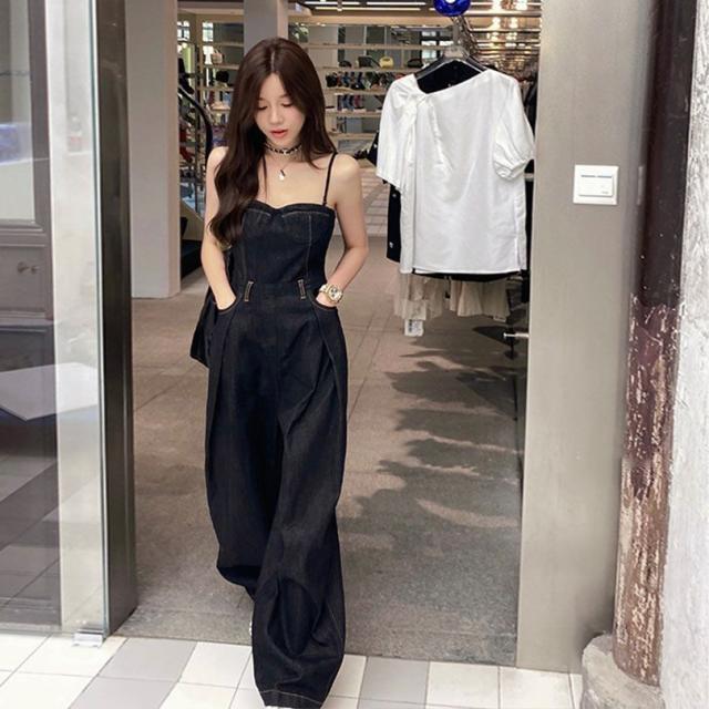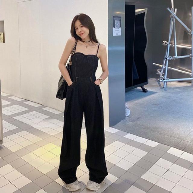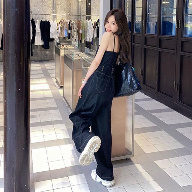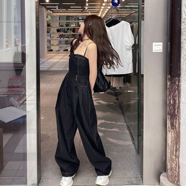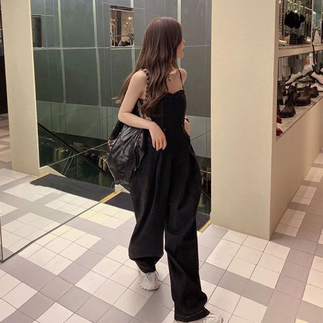 キャミサロペット 春夏 パンツ レディース ワイドパンツ 韓国風 オールインワン デニムサロペット 細い肩紐 キャミソール 上品 きれいめ オフィス 仕事 着痩せ 大きいサイズ カジュアル ゆったり ロング おしゃれ 体型カバー