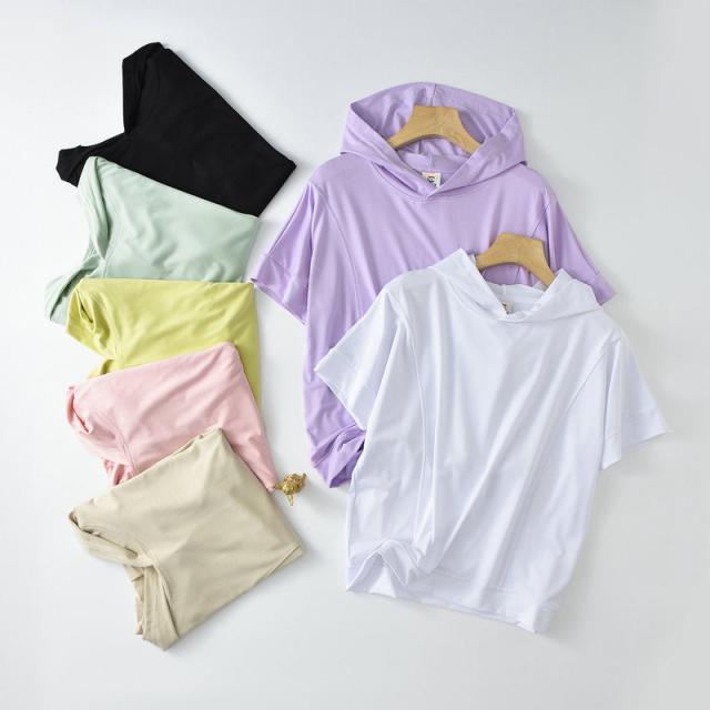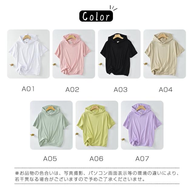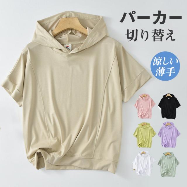 パーカー レディース tシャツ 五分袖 フード付き 夏 薄手 半袖パーカー カットソー トップス プルオーバー 冷房対策 キャンプ