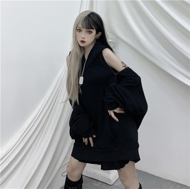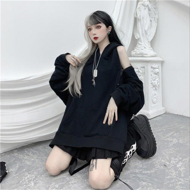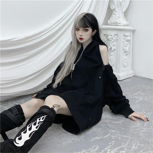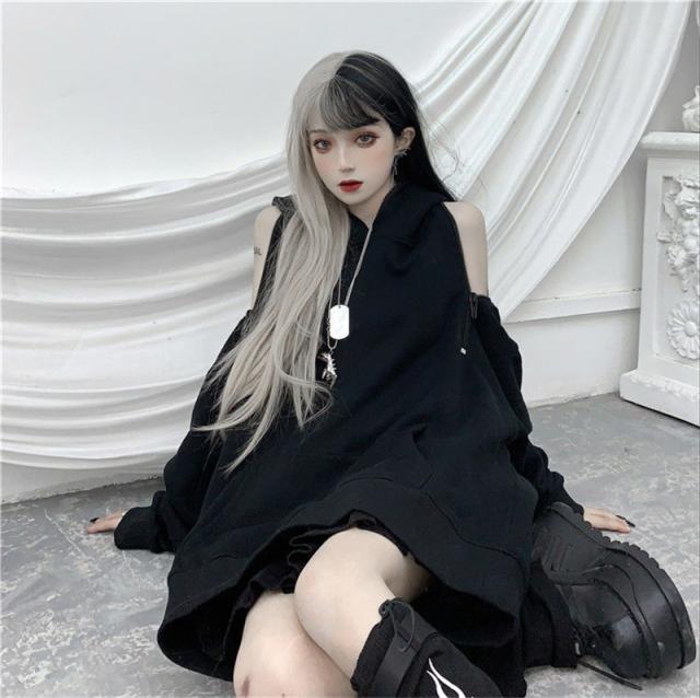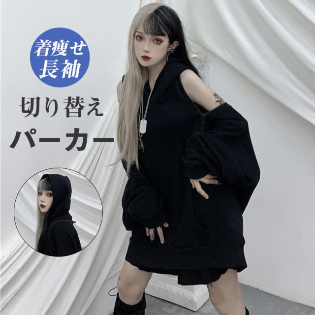 パーカー レディース トップス パーカーワンピース 肩が出る 夏服 長袖 薄手 フード付き 無地 体型カバー 地雷 ゆったり カジ