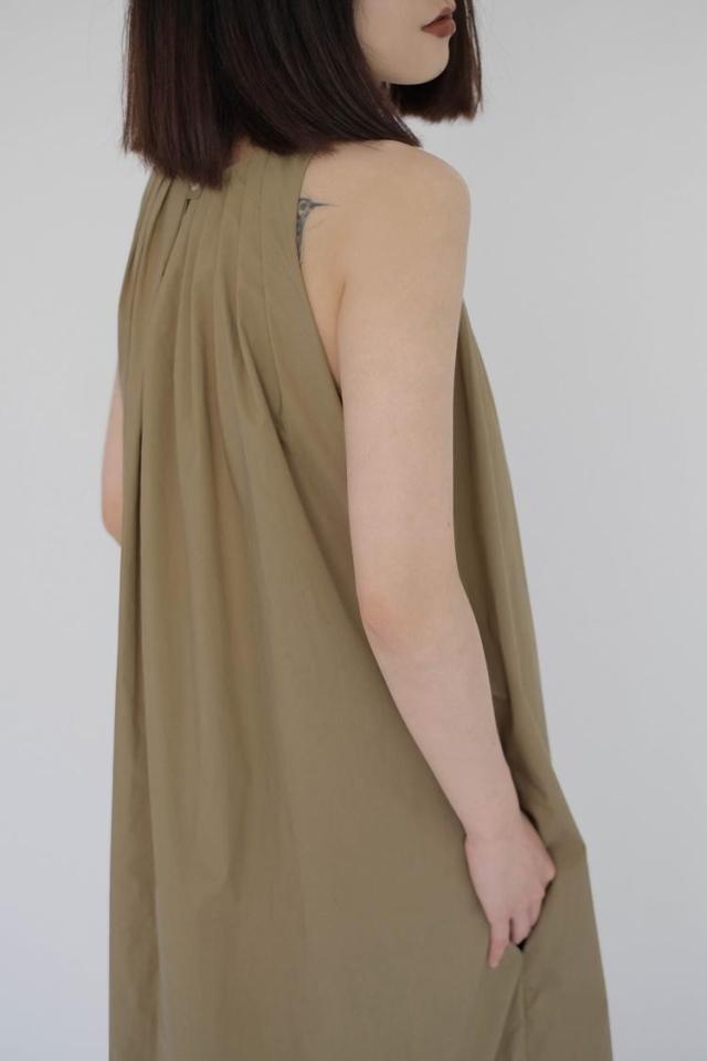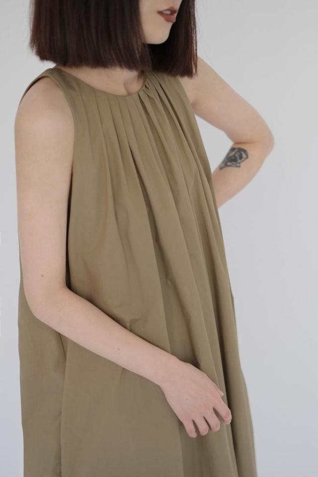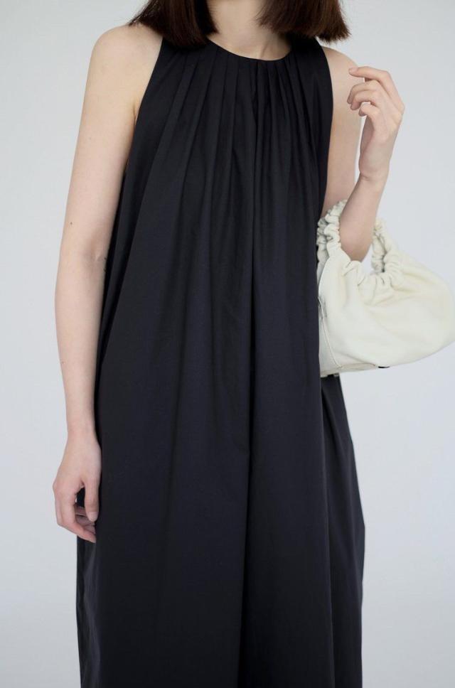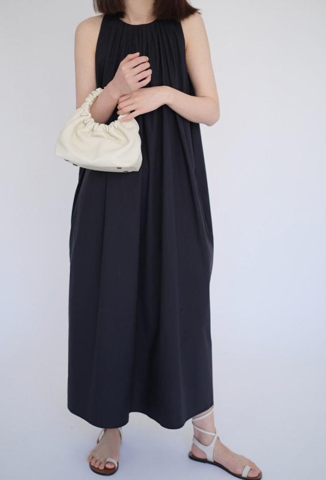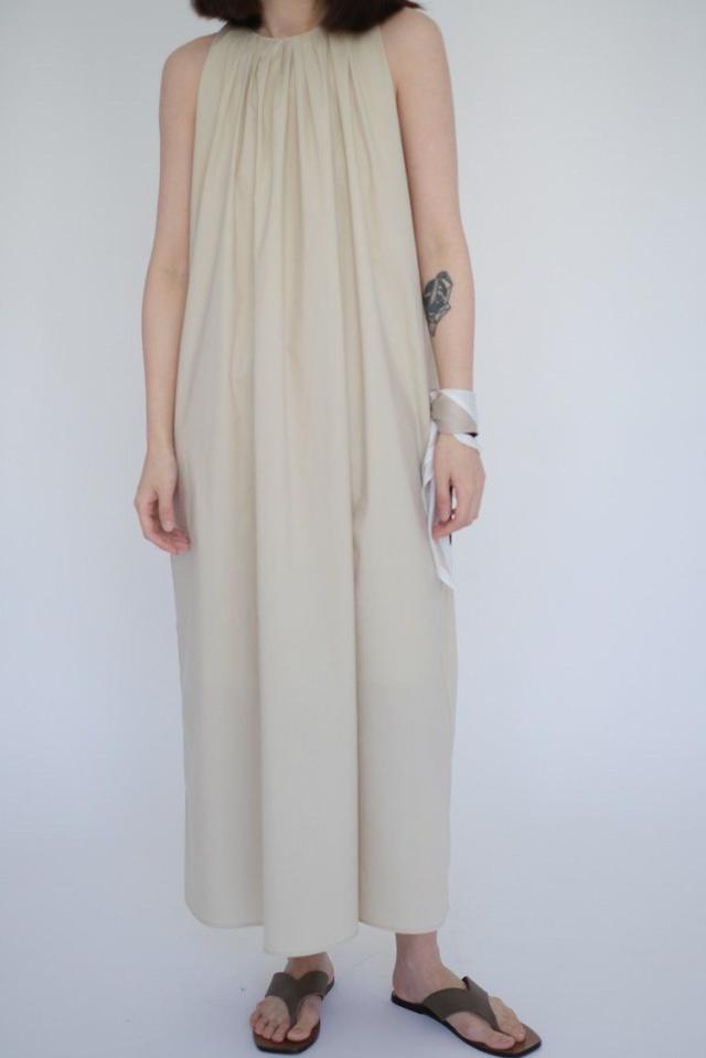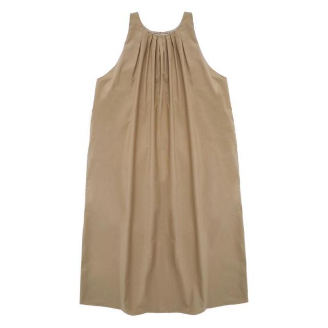 送料無料 ワンピース ギャザー ノースリーブ Aライン フレアワンピース 無地 コットン リネン 綿麻 ロング丈 チュニック マキシ丈 ロングワンピース