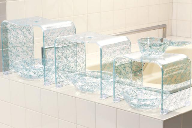 アクリルの透明感にローズモチーフが美しいバスシリーズ