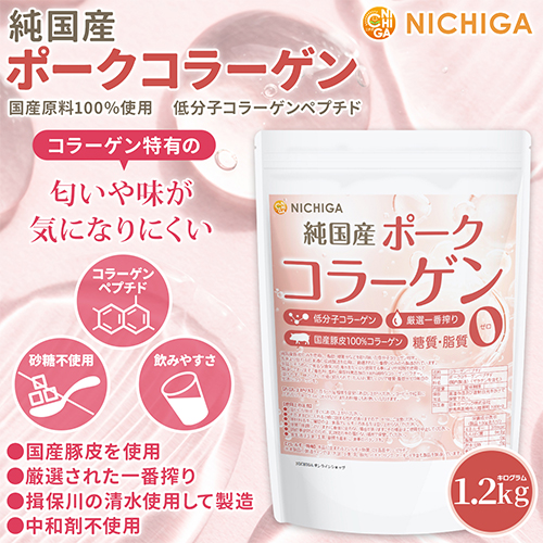 純国産 ポークコラーゲン 1.2kg 厳選一番搾り 低分子コラーゲン 糖質0・脂質0 国産豚皮100% 中和剤不使用 NICHIGA(ニチガ) TK0