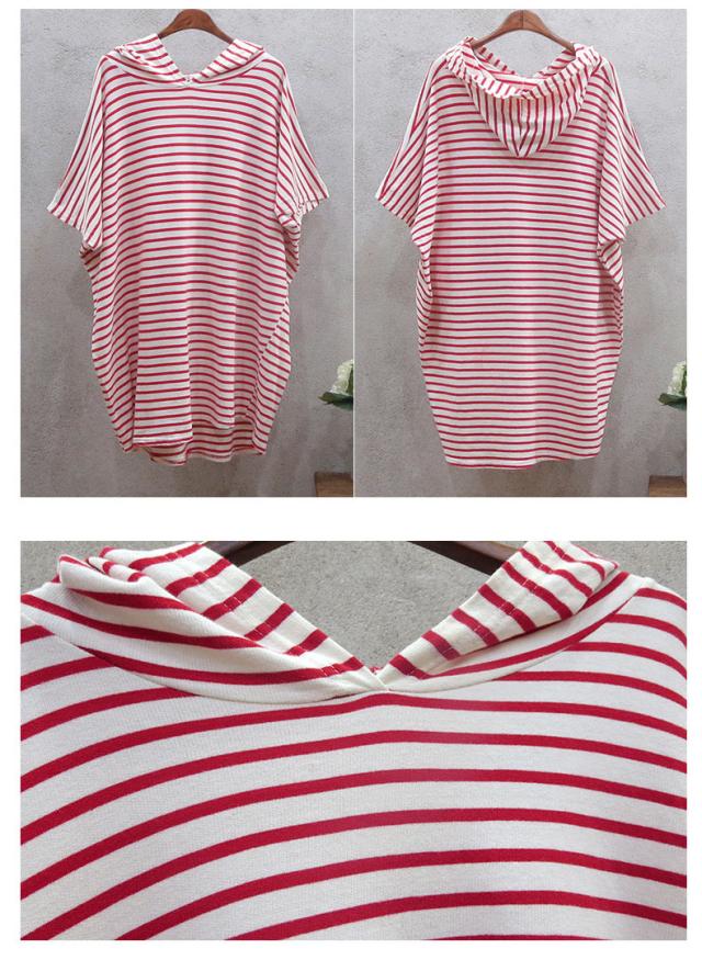 ワンピース Tシャツワンピ チュニック ボーダー フード付き ドルマン 半袖 ゆったり カジュアル