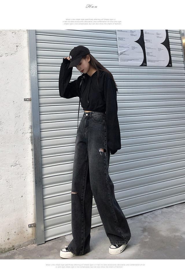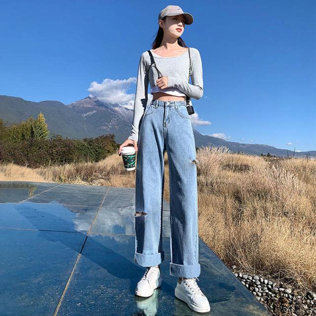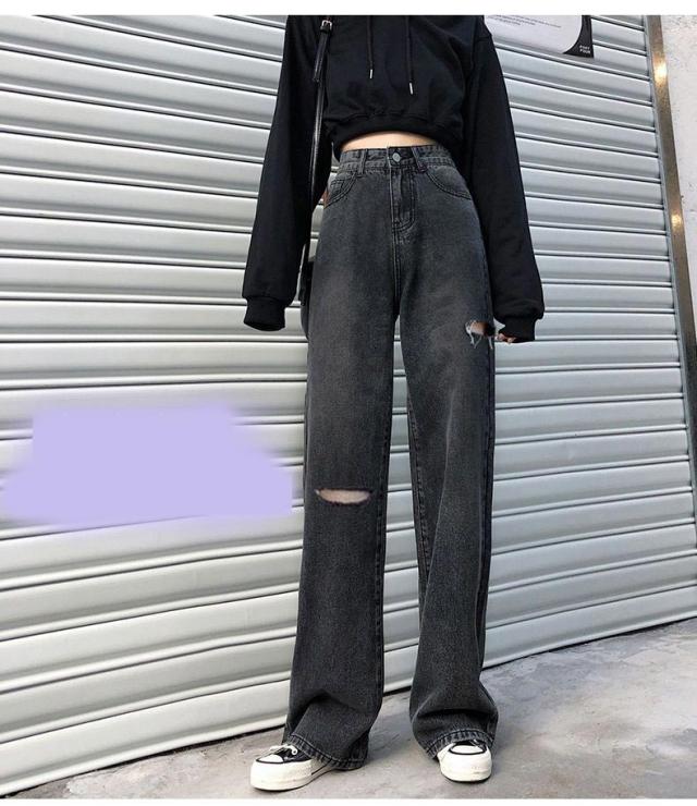 イドスリット ワイドストレートコットンデニムパンツ レディース パンツ デニムパンツ デニム ジーンズ ダメージジーンズ
