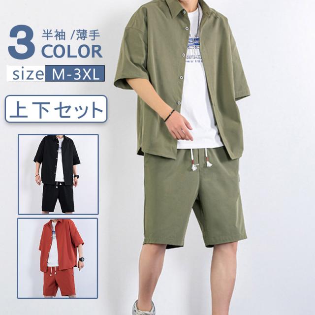 セットアップ メンズ 半袖 カジュアルスーツ ファション 30代 20代 運動 ゴルフ 通勤 オフィス 半ズボン 在宅 卒業式 通