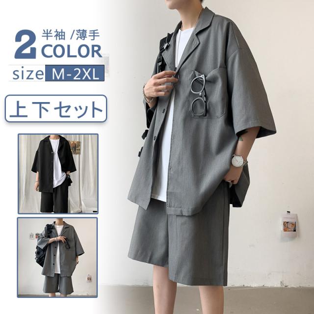 セットアップ メンズ 五分袖 カジュアルスーツ ファション 30代 20代 ファション 通勤 オフィス 半ズボン 在宅 卒業式 夏