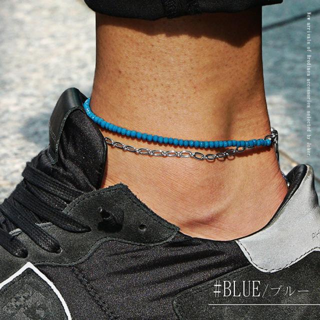 アンクレット メンズ つけっぱなし 足首 アクセサリー シンプル おしゃれ ビーズ チェーン 足輪 白 黒 ホワイト ブルー ブラック ユニセックス レディース ペア カップル メンズファッション リゾート サーフ系 ちょいワル お兄系 夏服 夏 夏新作 新作 プレゼント ギフト