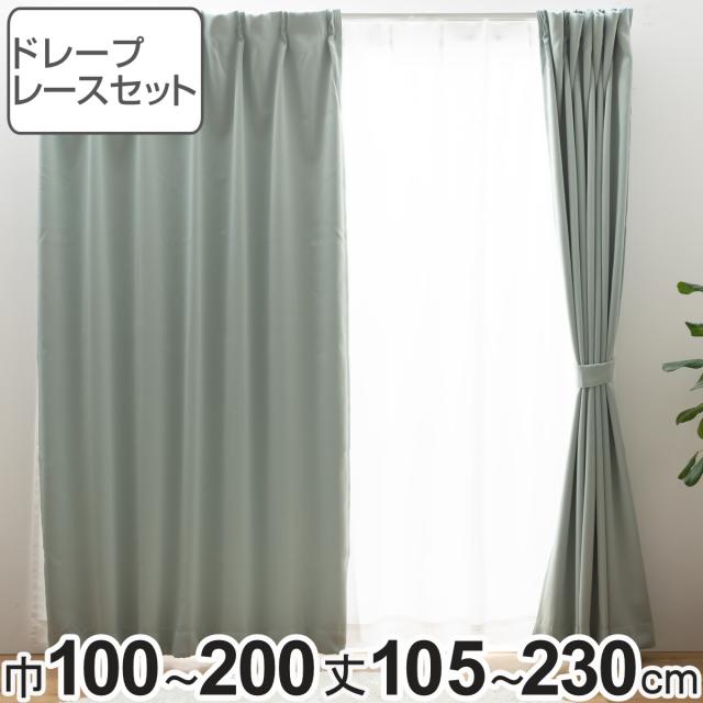遮光カーテン 1級遮光 レースセット UVカット 幅100〜200×丈105〜230cm 4枚組・2枚組 ( カーテンセット ドレープ レース セット 省エネ 既製 間仕切り 窓 目隠し ウォッシャブル 無地 シンプル 両開き 片開き 遮熱 )