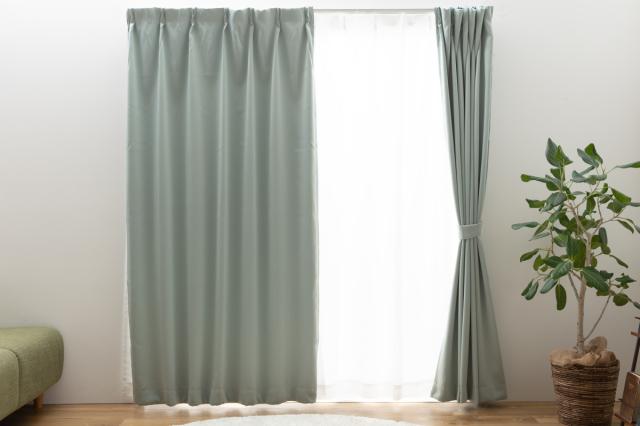 ヒダ山が2つの1.5倍ヒダ仕上げです。幅広いテイストのお部屋で使いやすい、スッキリとした見た目です。また、ドレープカーテンと共布のタッセルが付属しているので、光を取り込みたいときはカーテンをまとめておけます。
