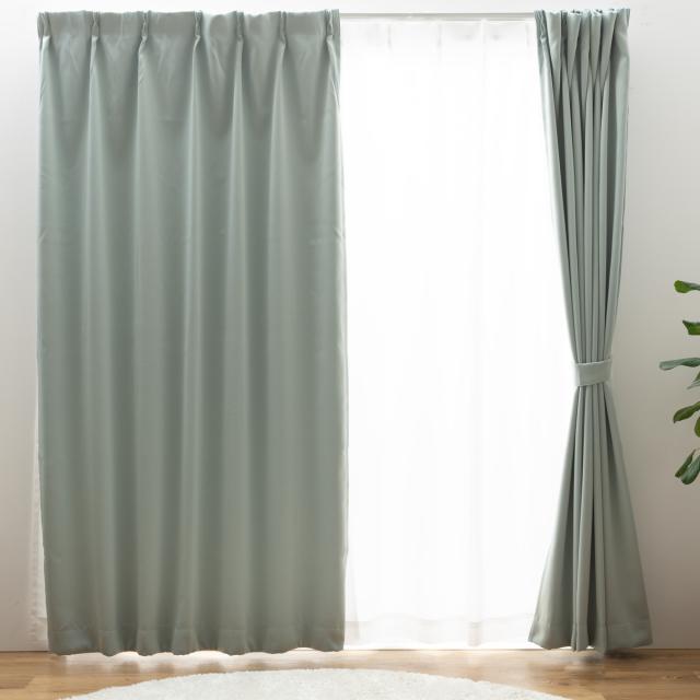 ヒダ山が2つの1.5倍ヒダ仕上げです。幅広いテイストのお部屋で使いやすい、スッキリとした見た目です。また、ドレープカーテンと共布のタッセルが付属しているので、光を取り込みたいときはカーテンをまとめておけます。