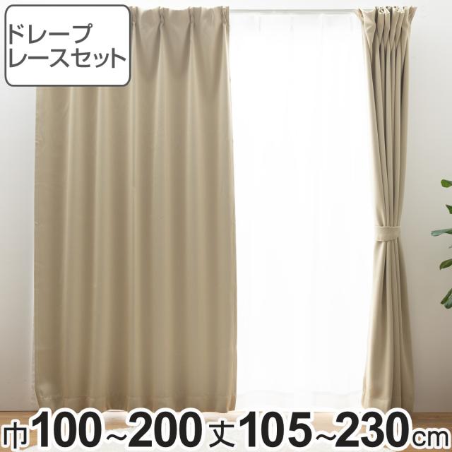 遮光カーテン 1級遮光 レースセット UVカット 幅100〜200×丈105〜230cm 4枚組・2枚組 ( カーテンセット ドレープ レース セット 省エネ 既製 間仕切り 窓 目隠し ウォッシャブル 無地 シンプル 両開き 片開き 遮熱 )