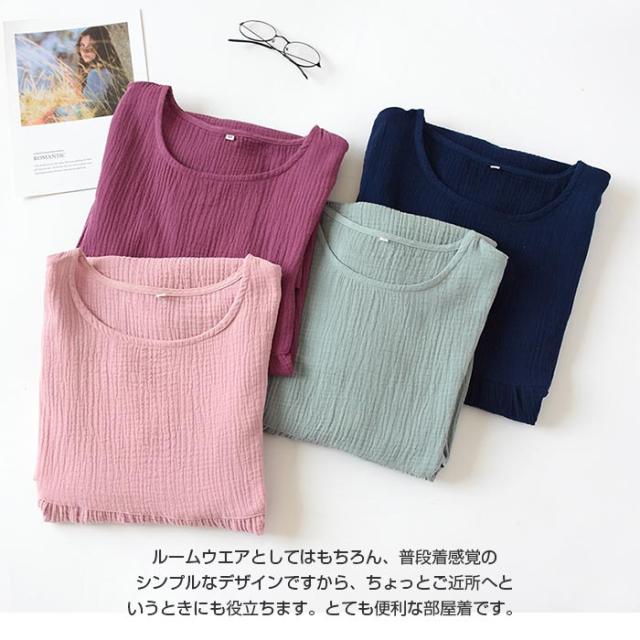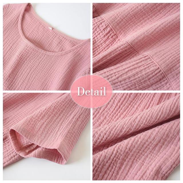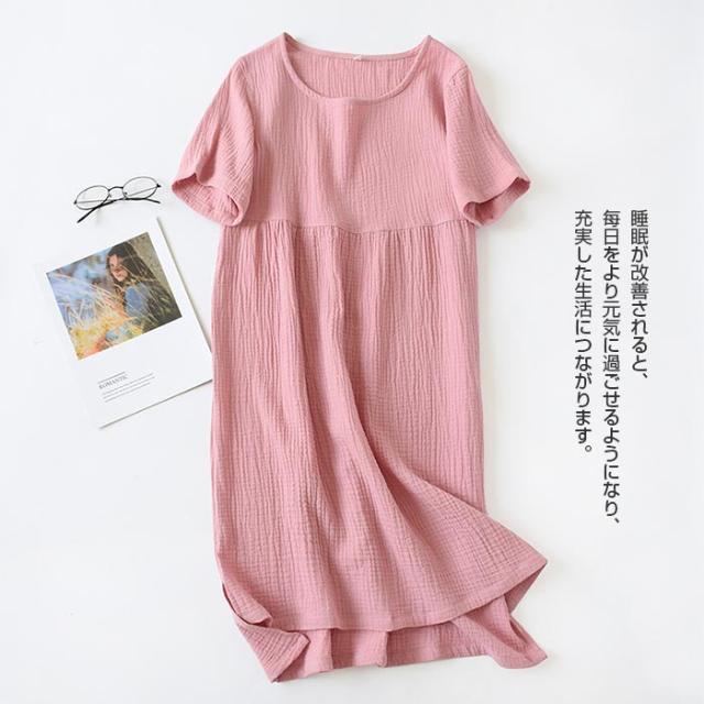 ★シンプルで飽きのこないデザインのルームワンピースなので、幅広い年代の方に愛用していただけるガーゼワンピース