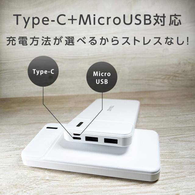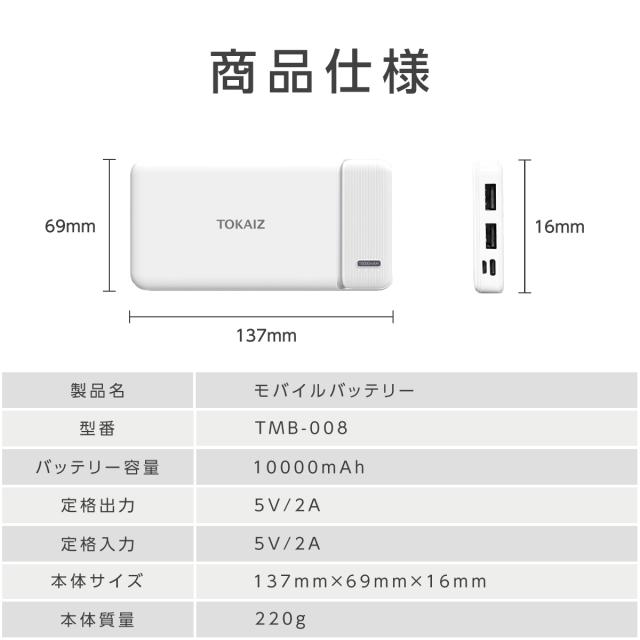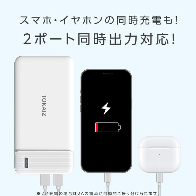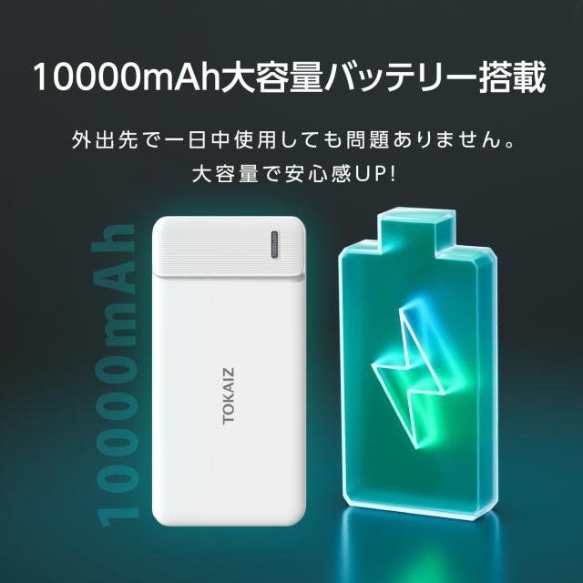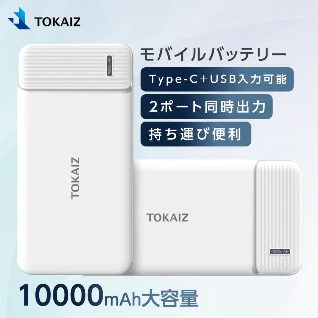 モバイルバッテリー 薄い 電池 10000mAh 大容量 軽量 USB 2ポート Typc-C USB コンパクト TOKAIZ