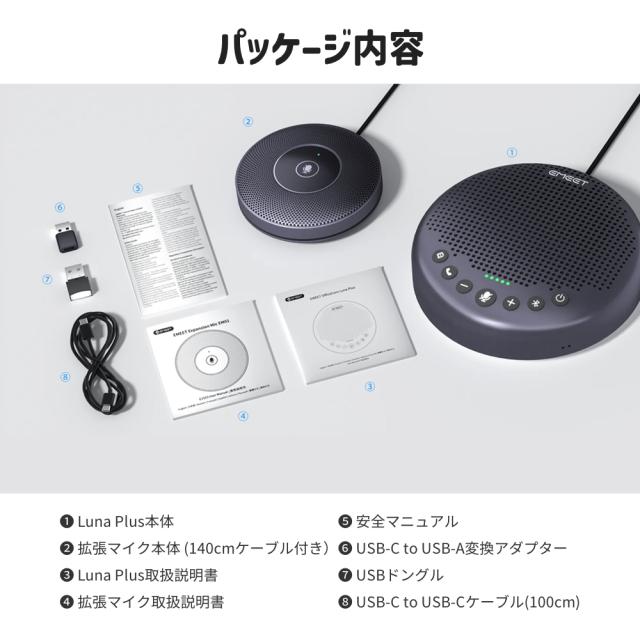 【年末年始セール 20%お得(15%OFF+5%ポイント) 特典付 | 日本正規販売店】 EMEET Luna Plus Kit ワイヤレス スピーカーフォン Bluetooth5.3 (8つマイク +1拡張マイク) エコーキャンセリング ノイズリダクション 最大14人対応 最大10時間使用 ZOOM SKYPE イミート