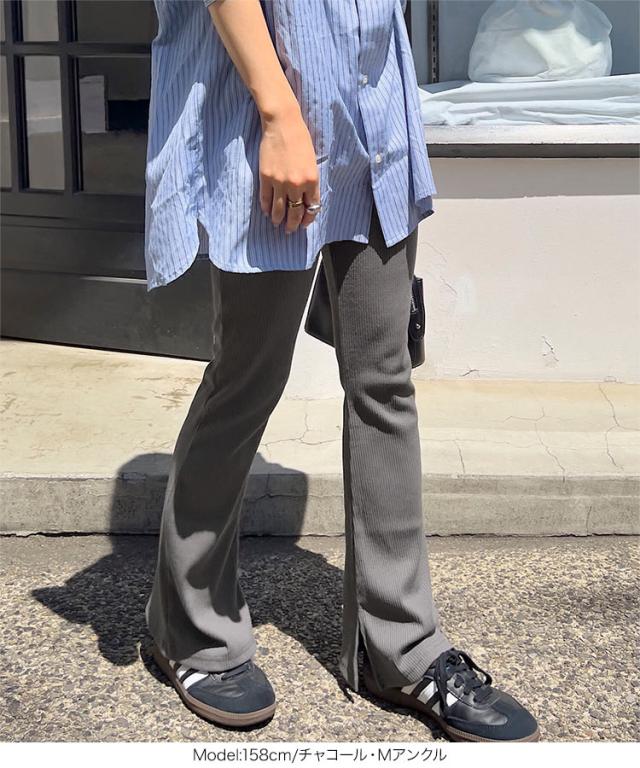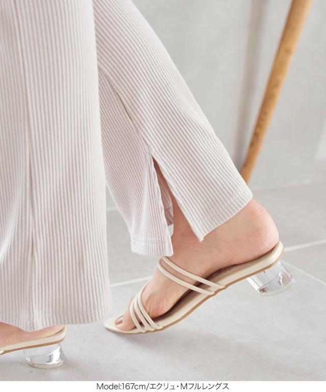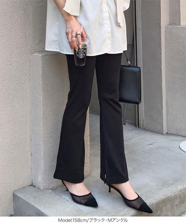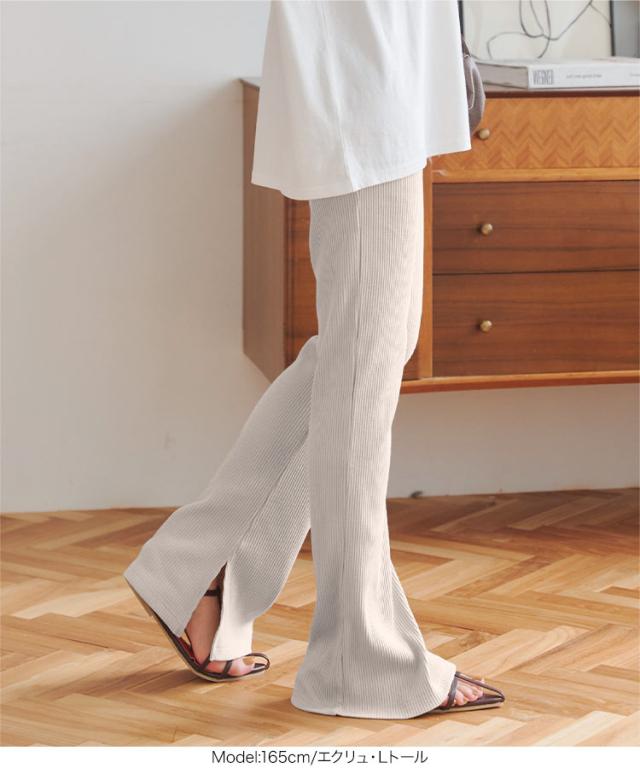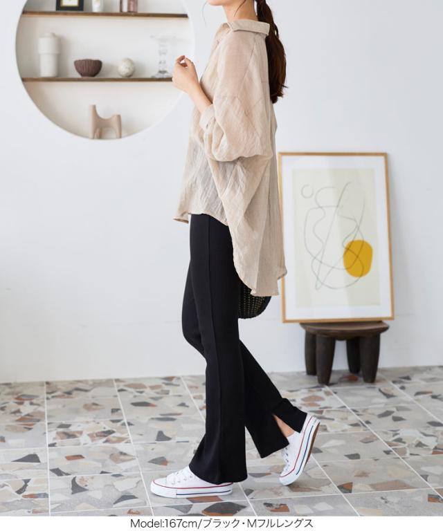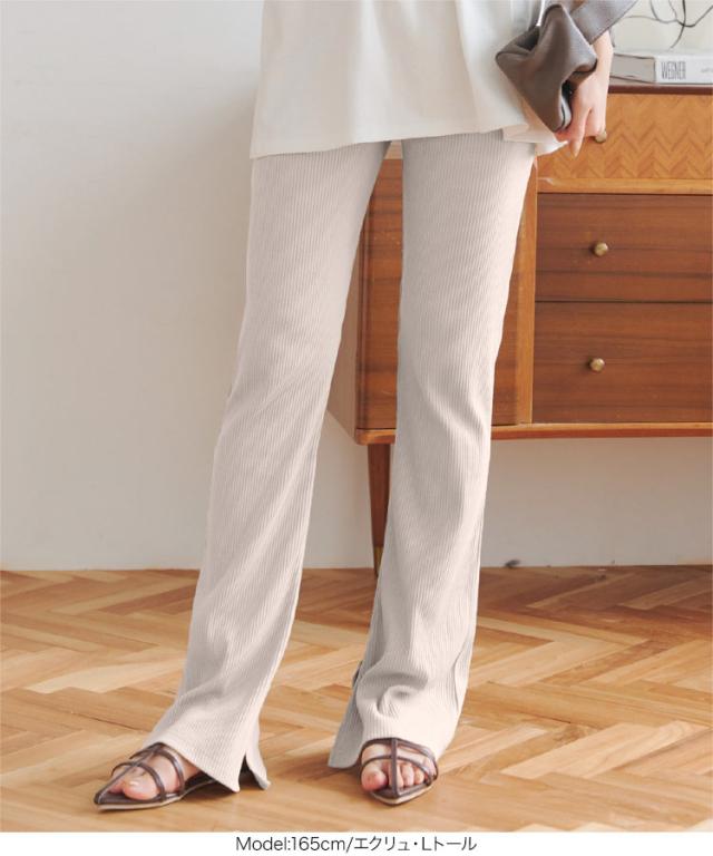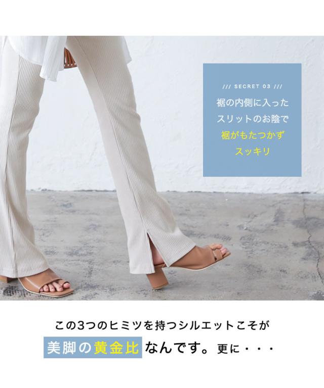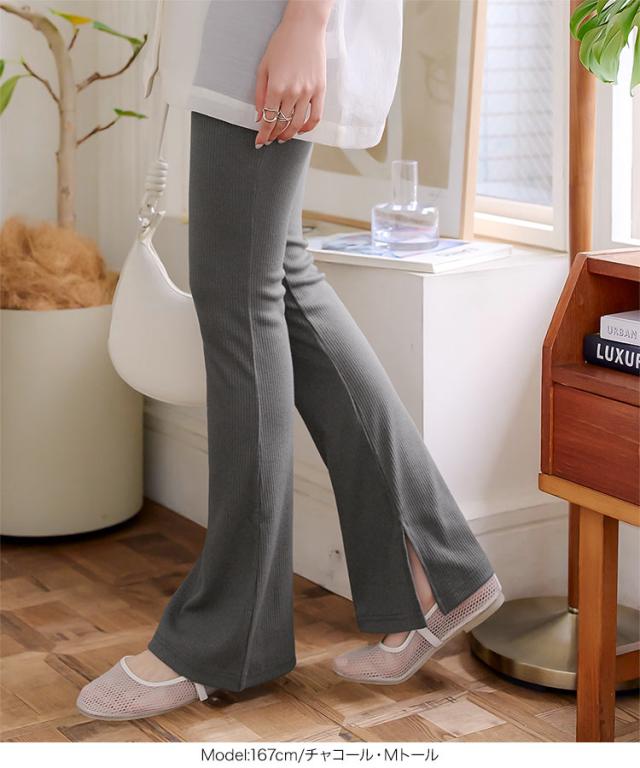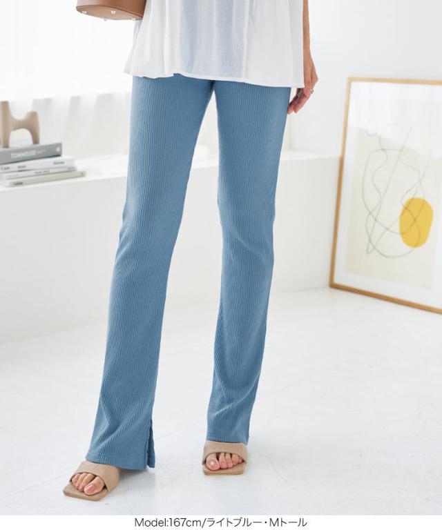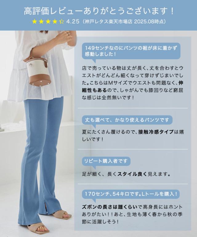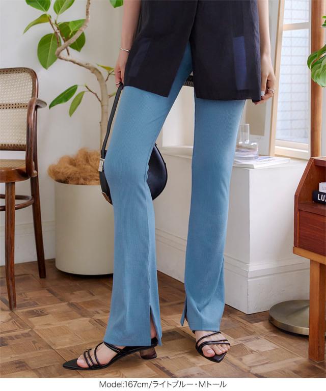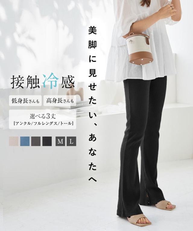 春新作 選べる3丈 接触冷感サイドスリットフレアリブパンツ M3932 入荷済 レディース ボトム ひんやり 冷たい リブパンツ ズボン レギンス M2807 スリット ストレッチ 伸縮 暑さ対策 夏対策 節約 アンクル ロング マキシ