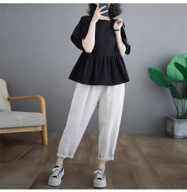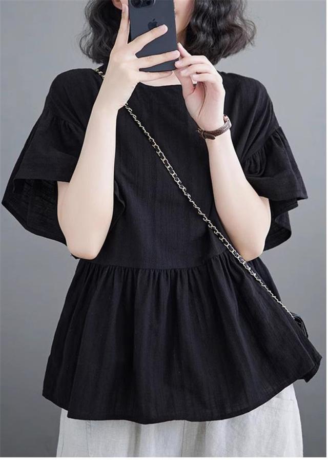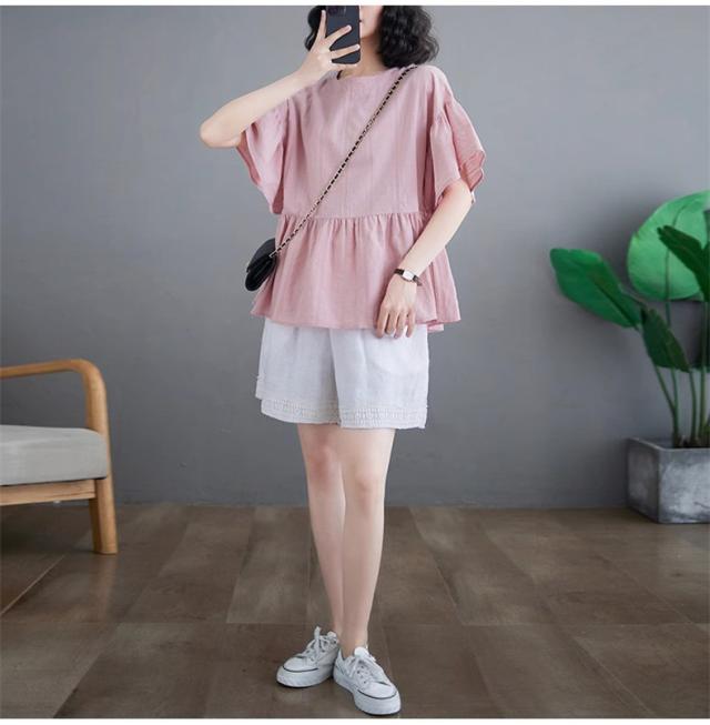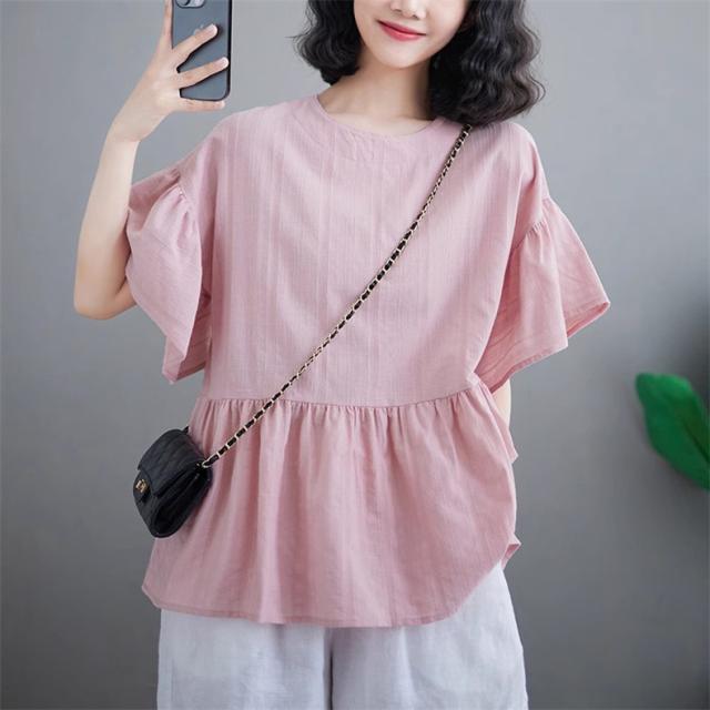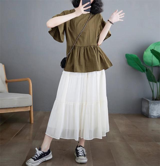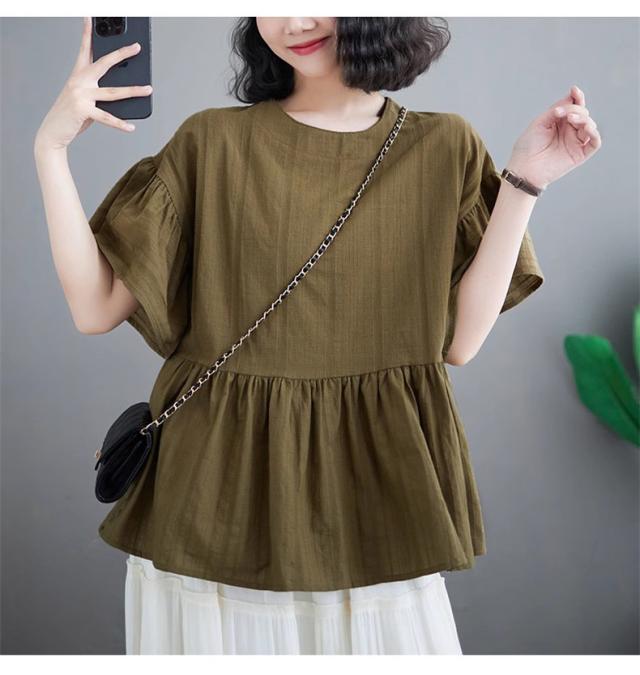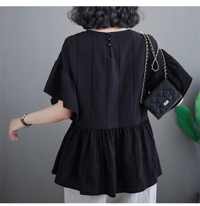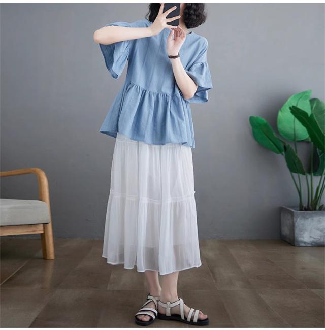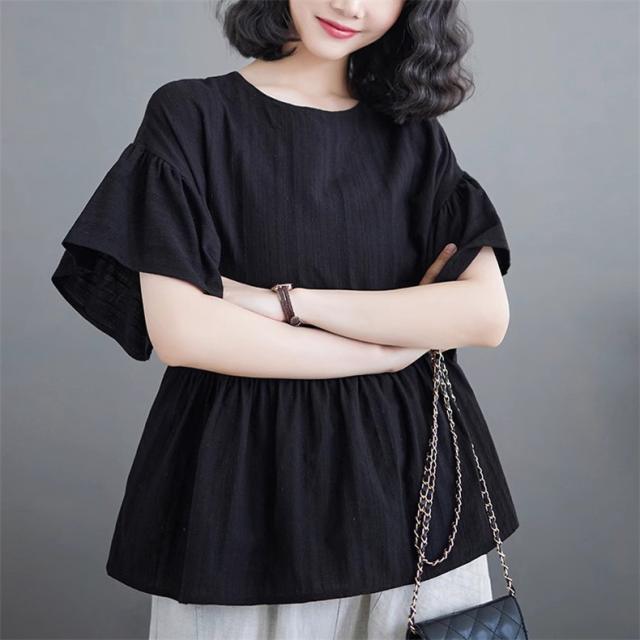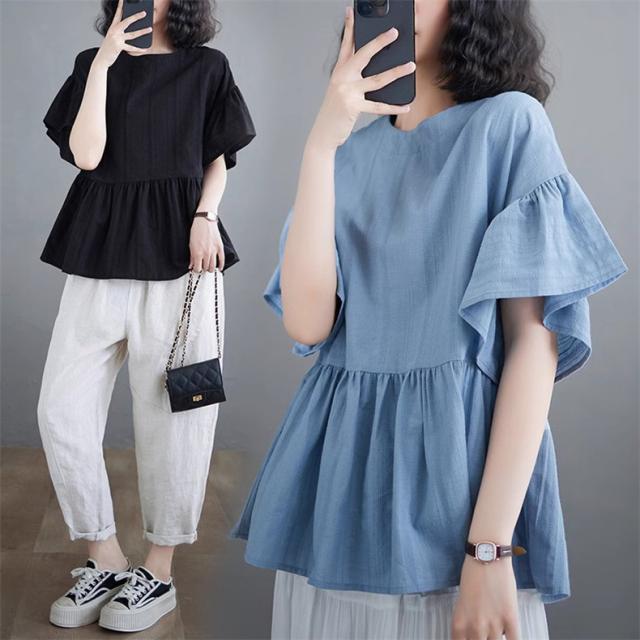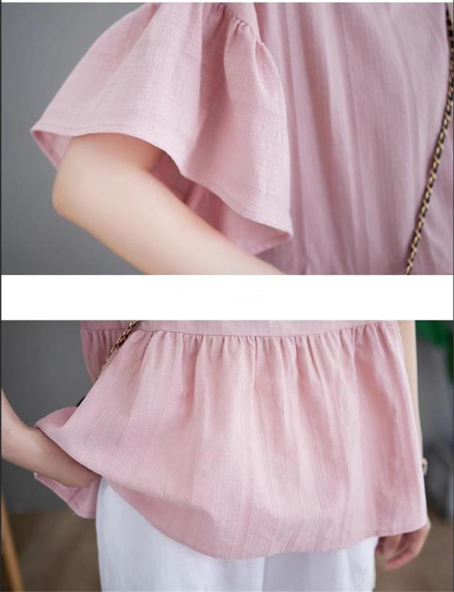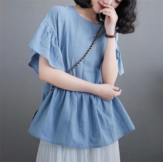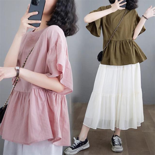 シャツ レディース 夏 トップス プルオーバー 半袖 クルーネック ラッフル袖 1枚でトレンド感いっぱいなスタイルが完成 着回し力抜群