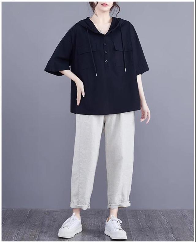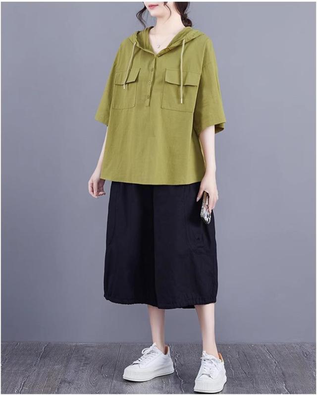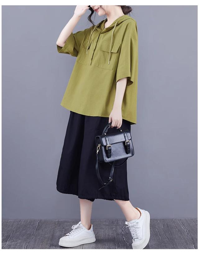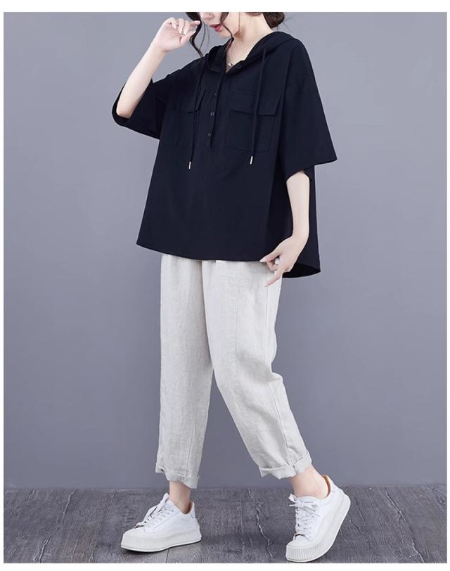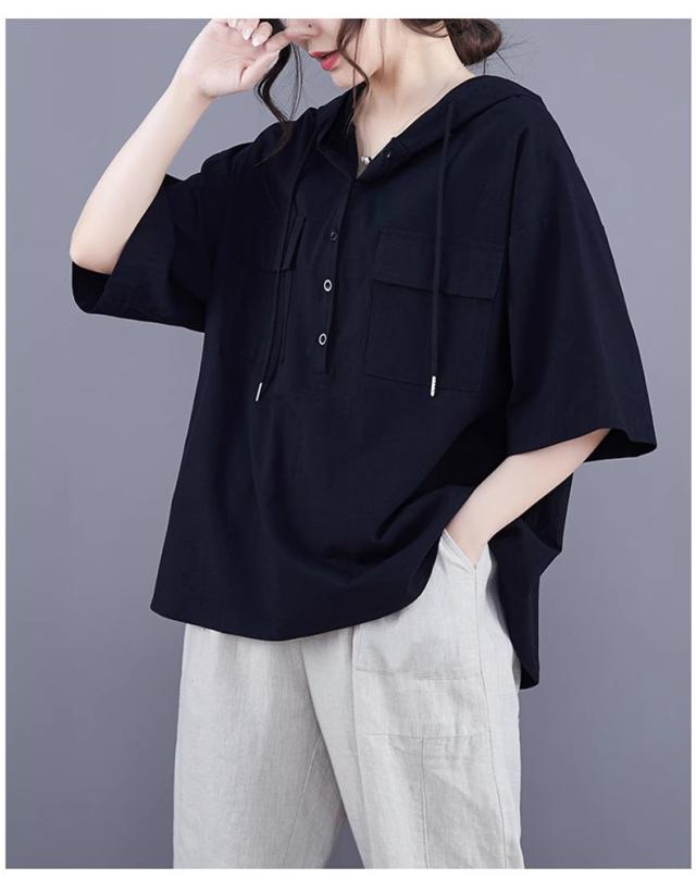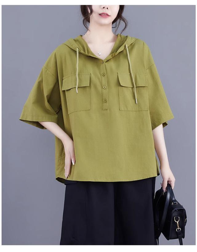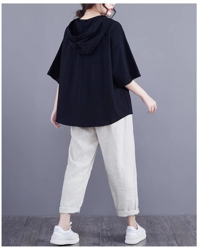 半袖トップス パーカー風 フード付き プルオーバー レディース 春夏 ゆったりとしたシルエット ビッグサイズ 体型カバー 今シーズンのオススメitem